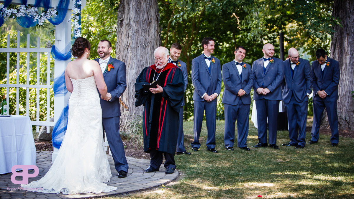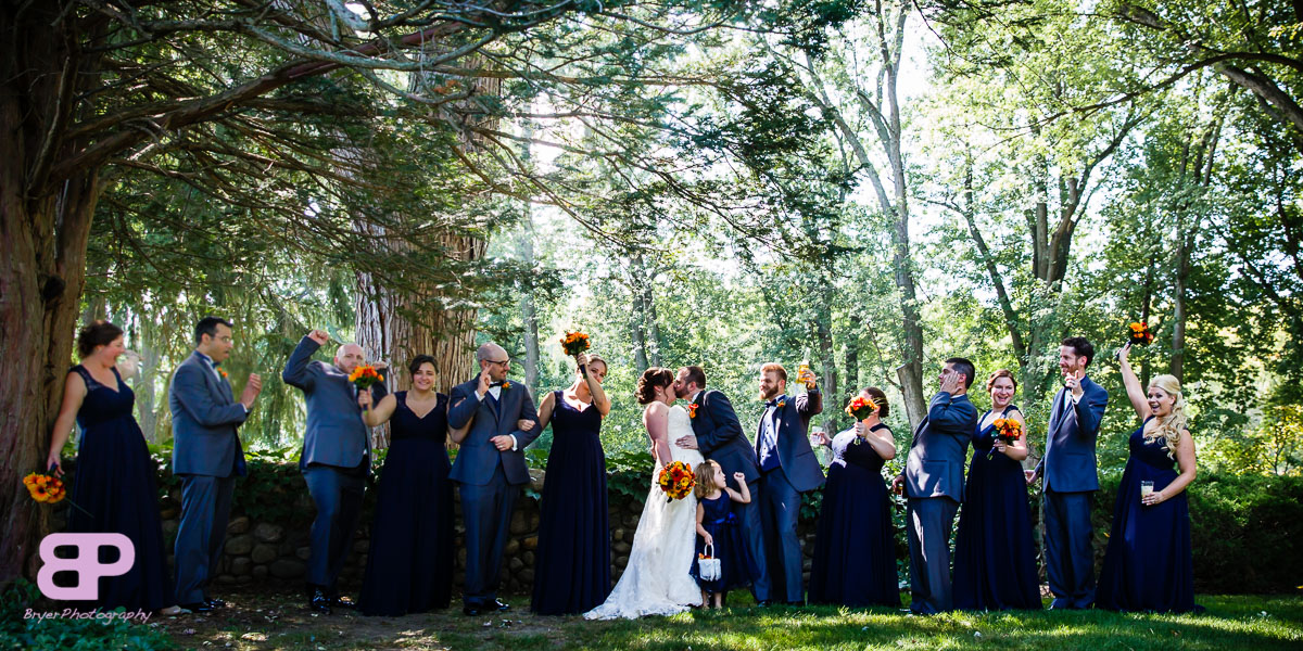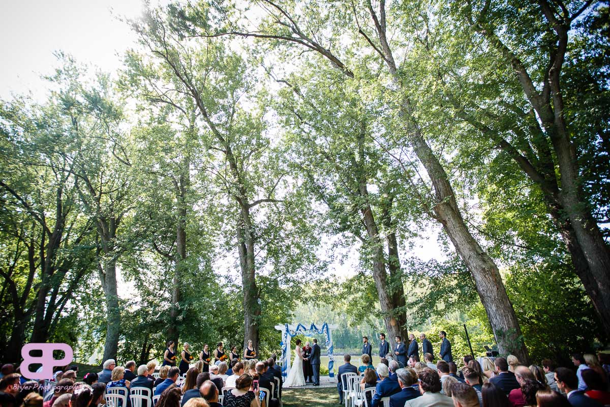 Cat and James told us River Stone Manor was beautiful, but when we stepped out of the car and walked back through the well-manicured grounds towards the river, we knew it was going to be a day filled with great shots. Cat finished getting ready there, and had a touching first look with her mother and father before the big reveal to her soon-to-be husband, James. After photos, they headed down towards the river for the ceremony. After cocktail hour, as we headed towards the reception, we were trying to gage what kind of crowd this would be for an afternoon wedding. Well, from the first song of the first set, the dance floor exploded. Light hearted fun and pure joy resounded from those dancing feet. The photobooth was hopping and the pie station might be my favorite dessert so far of the season! When you add in those special touches like the Star Wars score in the ceremony and the full participatory grace… you know this was a thoughtfully planned wedding. In his toast, the groom’s brother said that ‘James looks at Cat like he just opened a Star Wars action figure on Christmas morning.’ I think many people dream of feeling that much love and excitement to share a life with someone. Happy together, we hope they will be! ;)