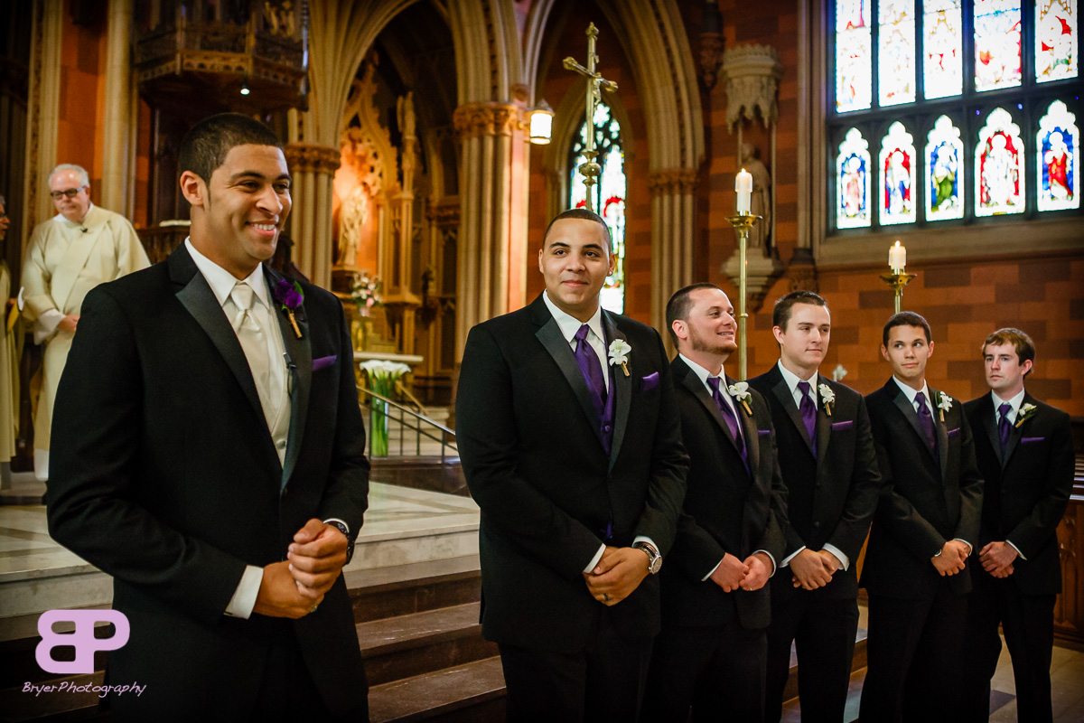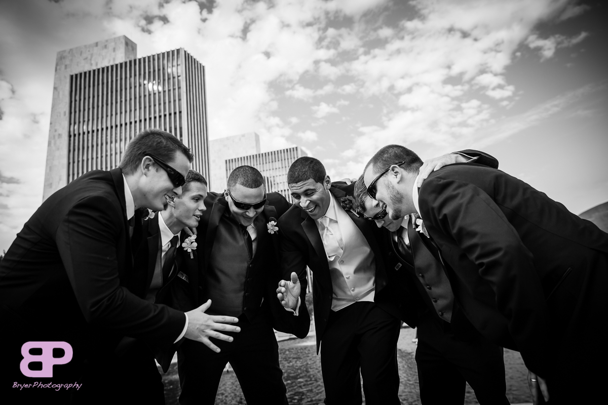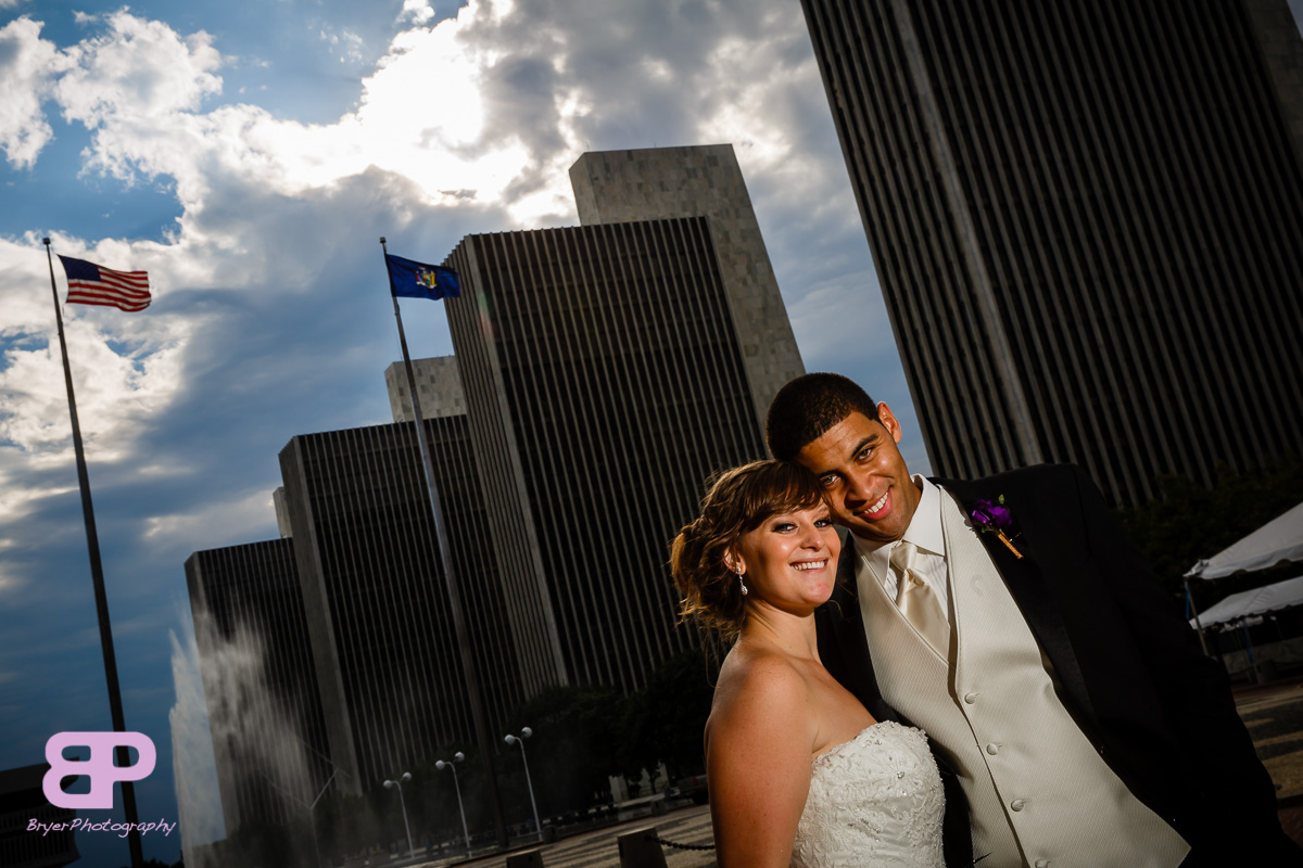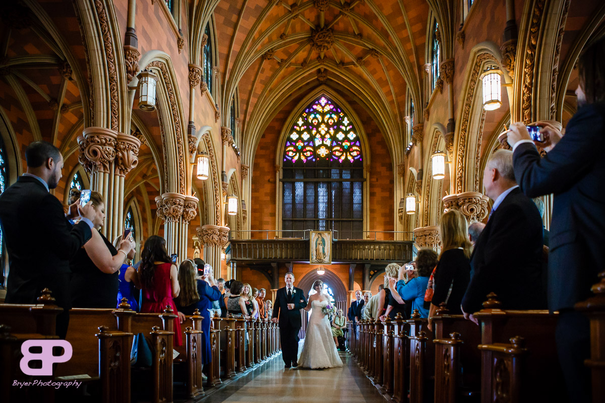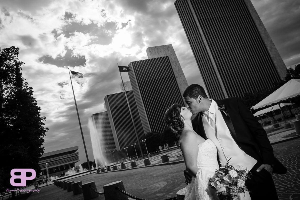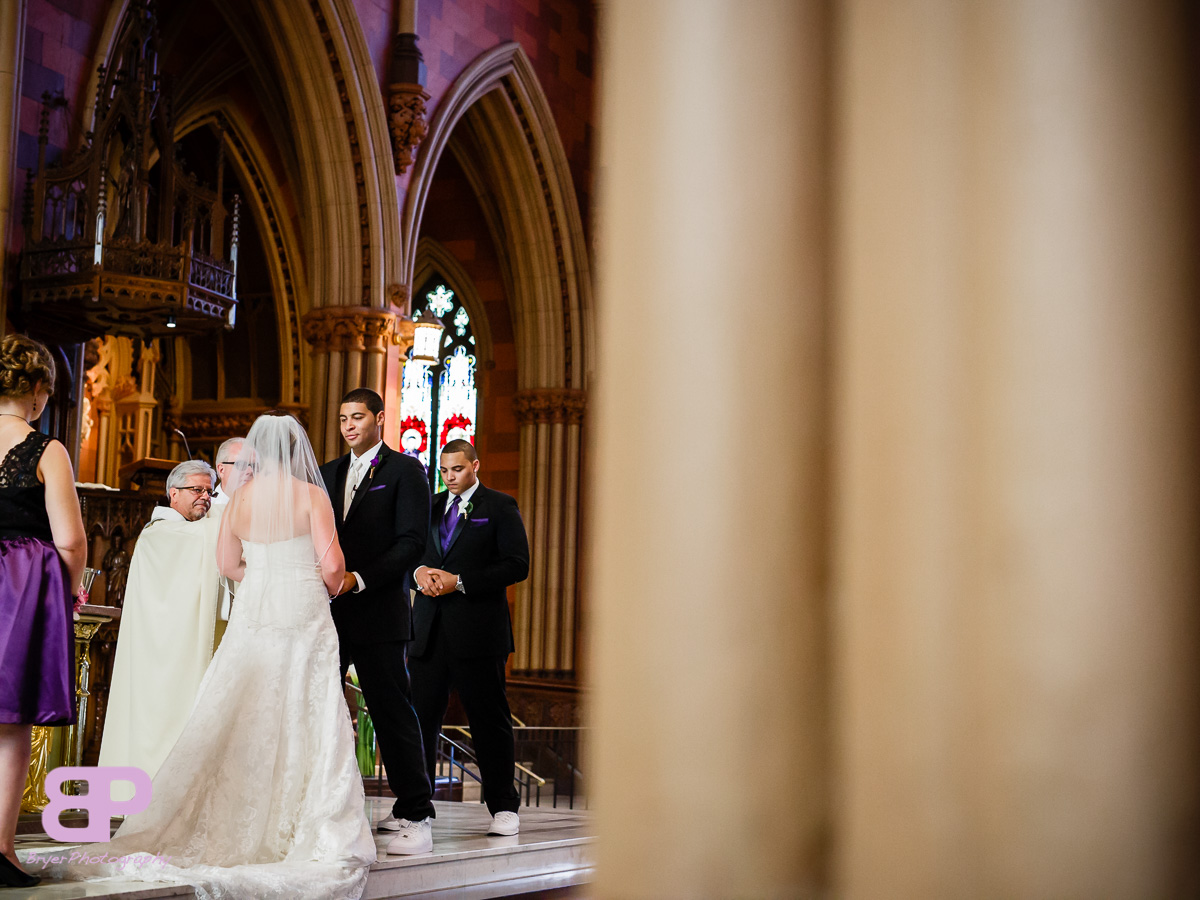 Jackie and Jared are not new to the blog. We first shot their engagement a year ago at Indian Ladder Farms, then they braved the old St John’s church for our first Urban Decay Project shoot. Well the third installment of their photo trilogy is their wedding day… which was perfection. When you have a couple as warm and fun as Jackie and Jared, there is a good chance that their friends and family will exude the same kind of energy, and they certainly did. It was nothing but smiles, love, and laughter from when we met them at the hotel that morning to when we said goodbye to them on the dance floor. They got married at the beautiful Cathedral of Immaculate Conception. After that, they and their party began their walk to 90 State which included bravely trekking across the wind tunnel that is the Empire State Plaza. Jackie and Jared had a lovely choreographed first dance that was followed by beautiful toasts and parent dances. Then the dance floor opened for some very high-energy moving and shaking. Mixed in between dance sets was a seductive garter retrieval, a pretty intense bouquet toss, some cake cutting, and some groomsmen karaoke-serenading the groom. I couldn’t picture a more beautiful day for a more beautiful couple, inside and out. Congrats, Jackie and Jared!