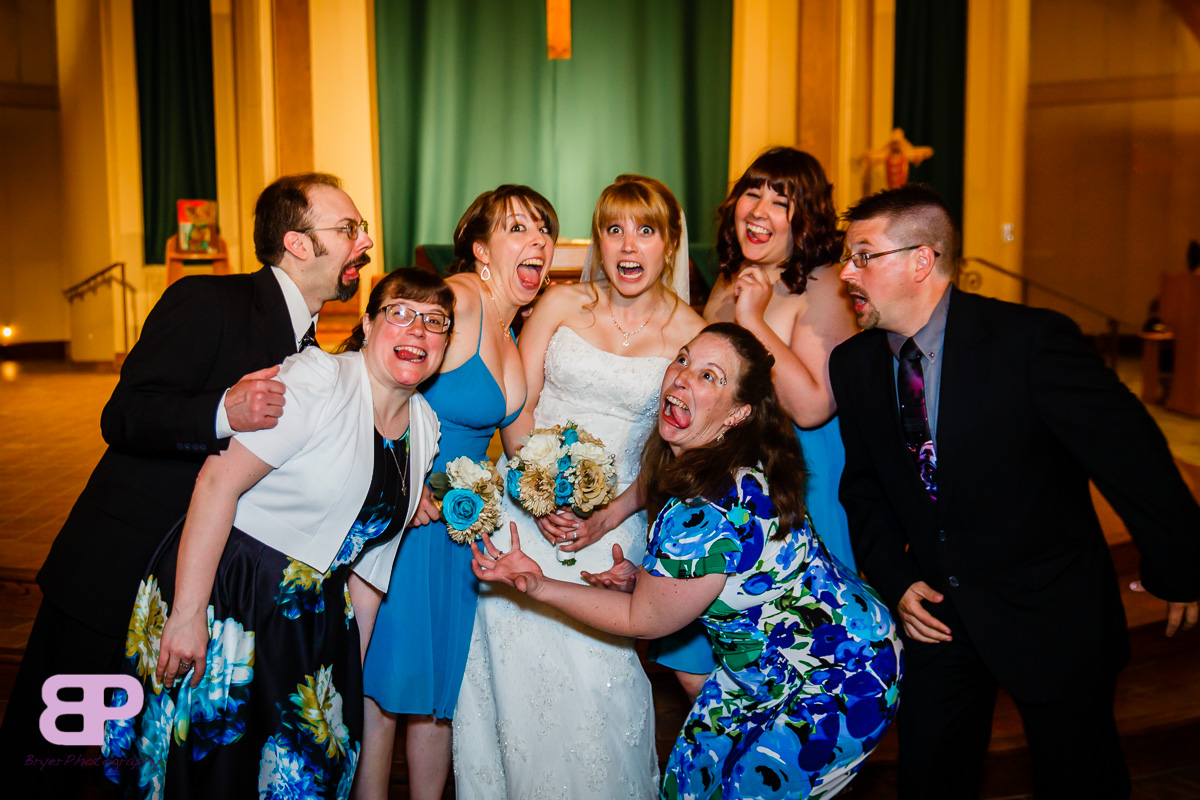 We couldn’t have wrapped up this long weekend with a nicer couple. We caught up with Janis and George while they were both getting ready. Evidence of Janis’s handiwork was all over their home. Copper spray paint and turquoise ribbon were evidence of her labor of love in making her own bouquets, decorations, and centerpieces for all of the tables. Janis and George got married at the beautiful Christ the King Church. I believe they win the award for the most child labor at a ceremony, three nephews ushered, two were ring bearers (adorned with badges to know they were legit), topped off by two little flower girls walking down the isle. After a few quick pictures we were off to Revolution Hall to get the party started. The toasts given by their matron of honor and best man, both friends from childhood, were filled with memories of Janis and George through the years. The matron of honor even slipped in a few math references for Janis’s credentials in math with hints of “exponentially” growing their family after the wedding. The two took full advantage of the delicious beer brewed at Brown’s by drinking from extra large beer mugs throughout the night… which may have had something to do with them busting some moves on the dance floor. We wish Janis and George the best of luck with all things ahead, starting with their sure to be fun-filled honeymoon in Ireland!