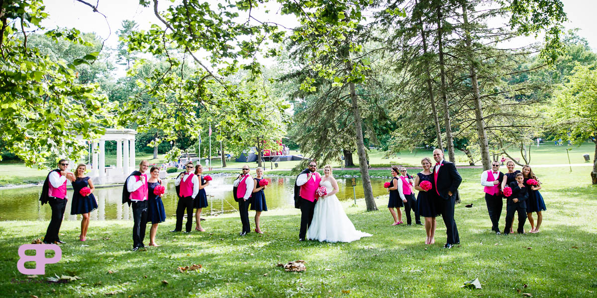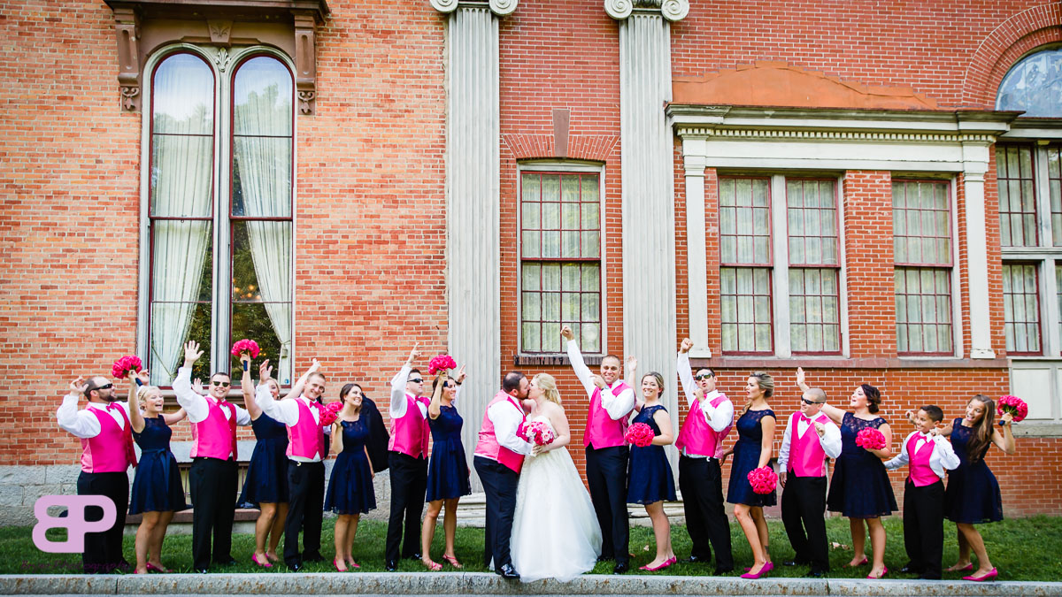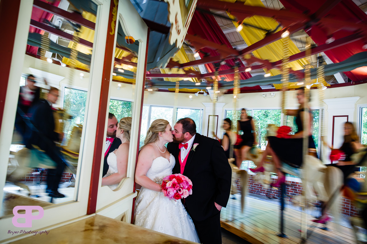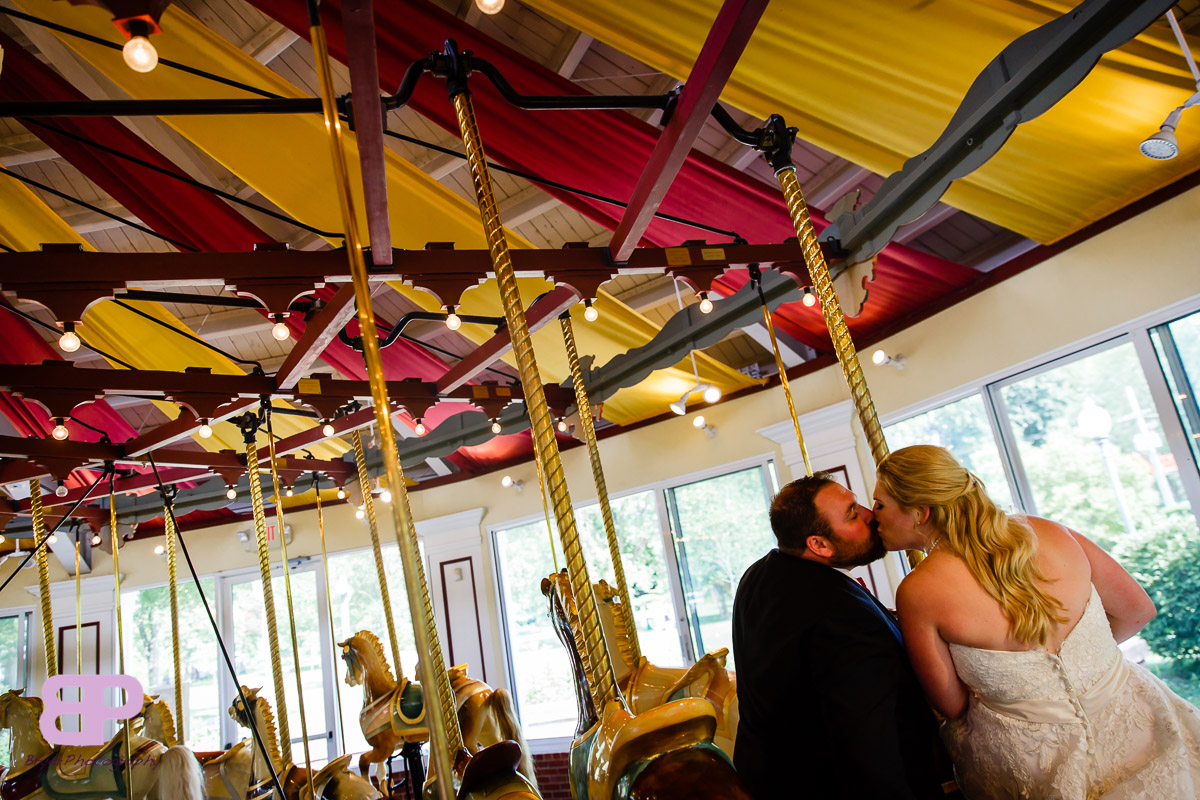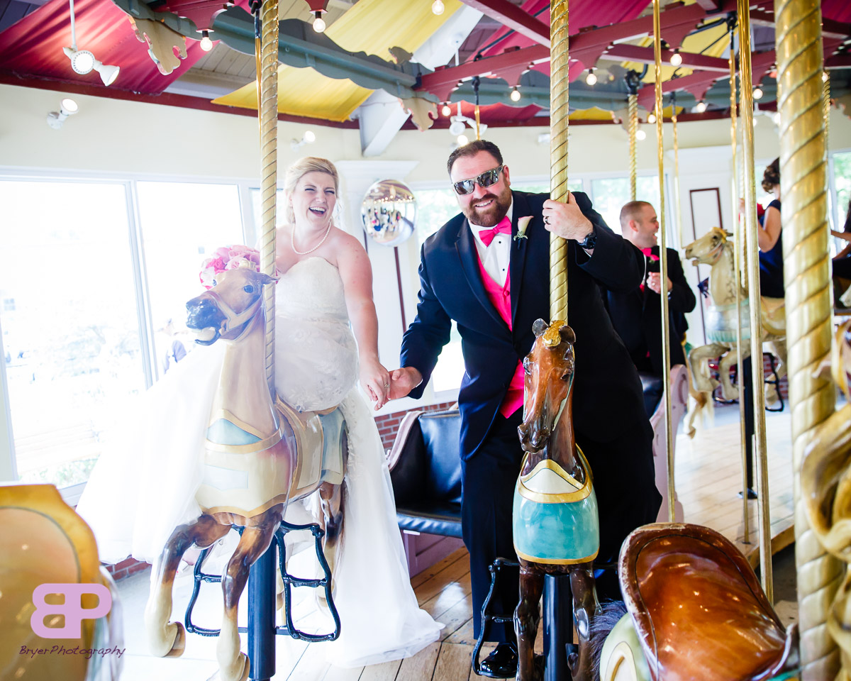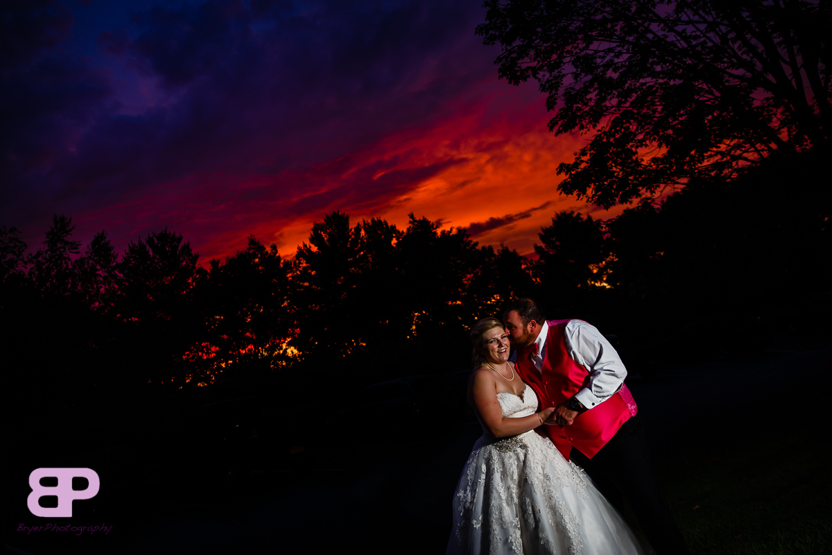 Erin and Justin had an amazing day for their wedding. We met up at Erin’s family home which we got to after many twists and turns through some breathtaking country roads. After some shots there, we headed to the church in Corinth where we met up with Justin and his groomsmen. After a very sweet ceremony, it was off to Congress Park where the bridal party saddled up to take a few spins on the carousel. There were many laughs as the sea of pink and blue streaked by. Then it was back on the party bus to Longfellow’s where the party officially kicked off. There were fun introductions (the stakes were high with a prize on the line for best entrance), dances, and toasts. By the time dinner was served you could feel the crowd getting antsy to dance. And dance they did. Not only was the weather picture-perfect that day, but Mother Nature bestowed one last gift upon them, a gorgeous firey sunset lit up the sky. We are so excited for these two and all the sunsets, fun, and memories-to-be-made that lie in store for them!