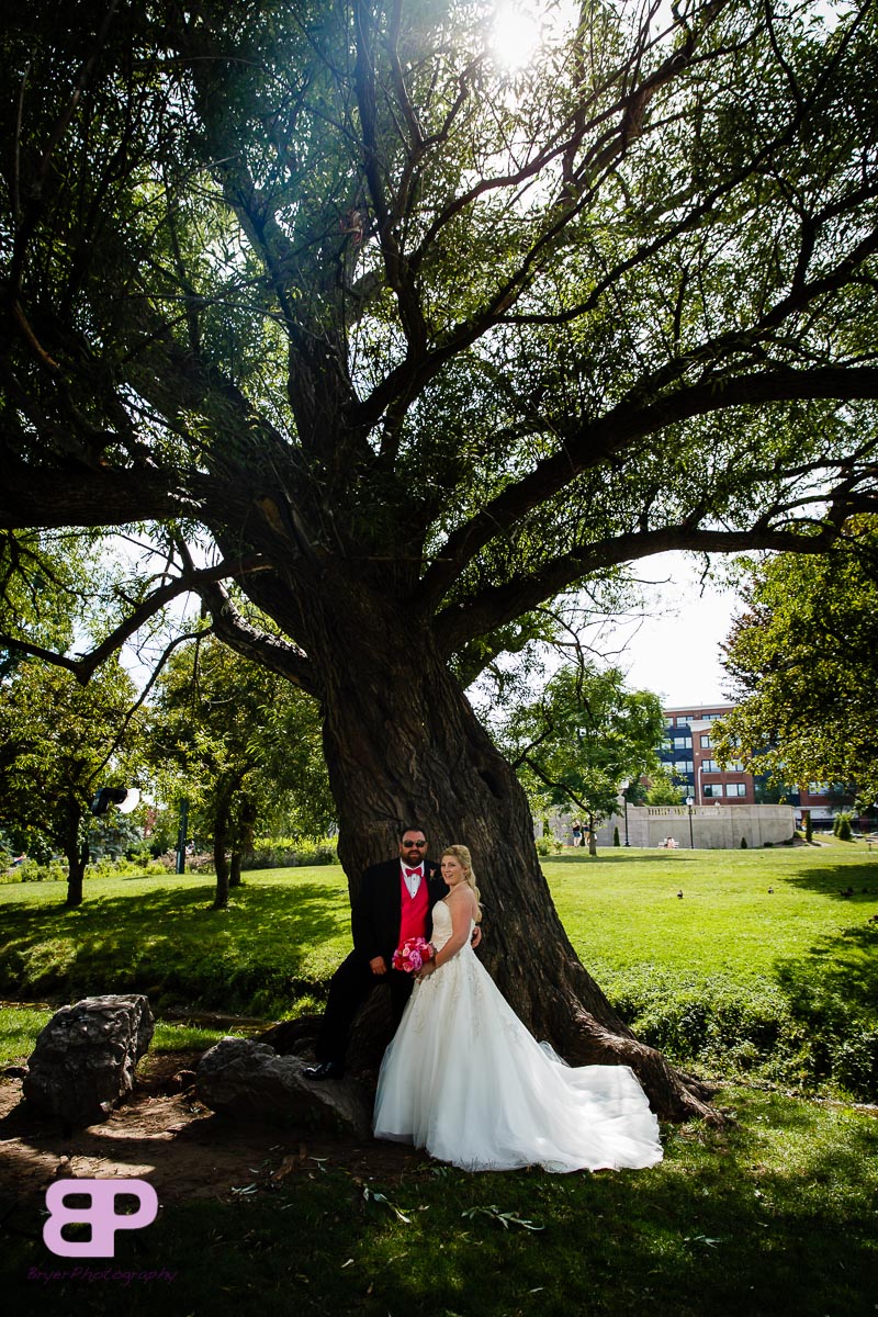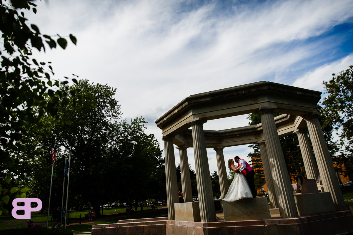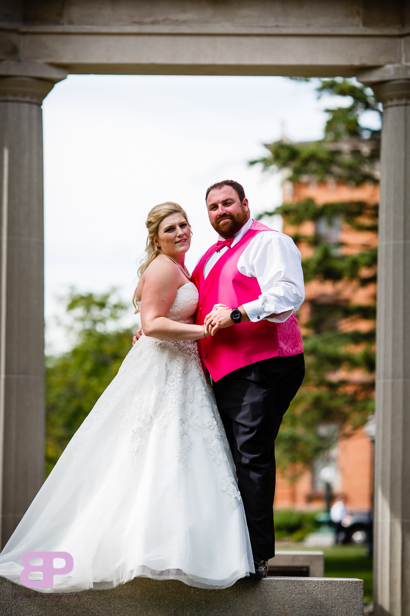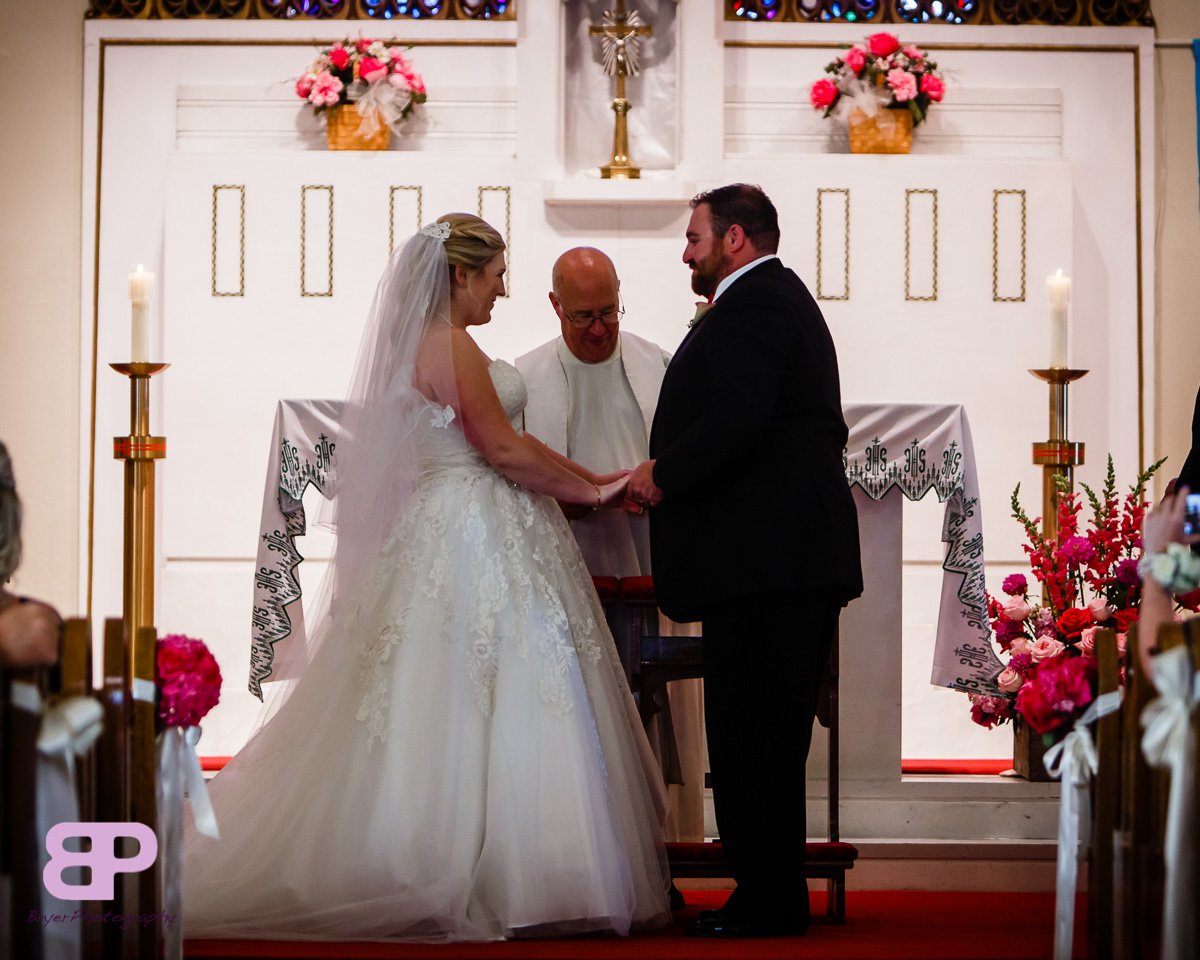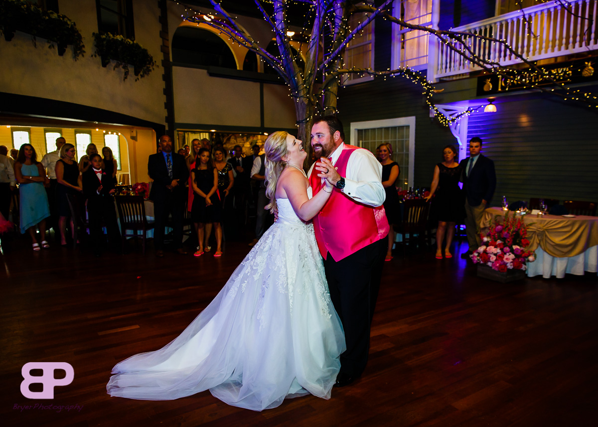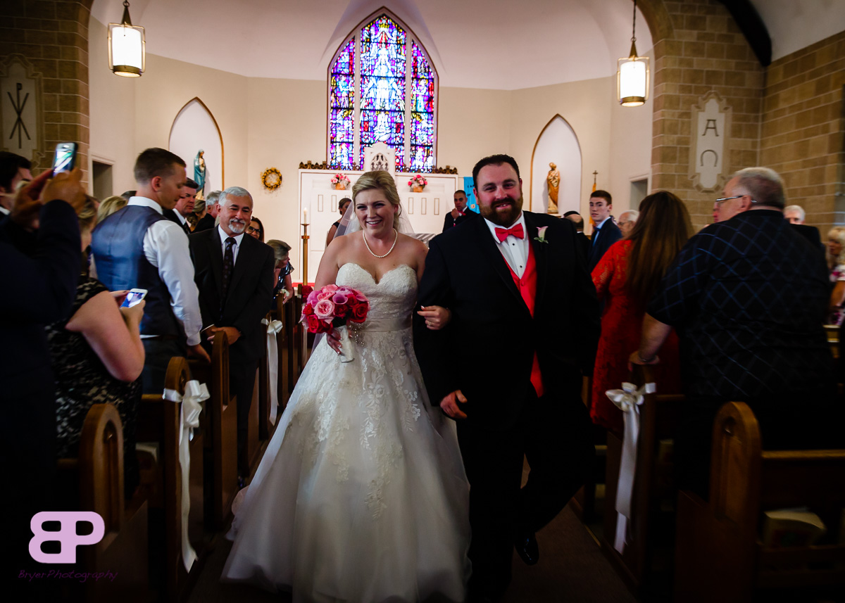 Erin and Justin had an amazing day for their wedding. We met up at Erin’s family home which we got to after many twists and turns through some breathtaking country roads. After some shots there, we headed to the church in Corinth where we met up with Justin and his groomsmen. After a very sweet ceremony, it was off to Congress Park where the bridal party saddled up to take a few spins on the carousel. There were many laughs as the sea of pink and blue streaked by. Then it was back on the party bus to Longfellow’s where the party officially kicked off. There were fun introductions (the stakes were high with a prize on the line for best entrance), dances, and toasts. By the time dinner was served you could feel the crowd getting antsy to dance. And dance they did. Not only was the weather picture-perfect that day, but Mother Nature bestowed one last gift upon them, a gorgeous firey sunset lit up the sky. We are so excited for these two and all the sunsets, fun, and memories-to-be-made that lie in store for them!