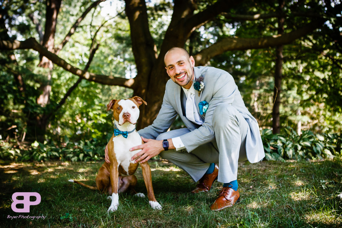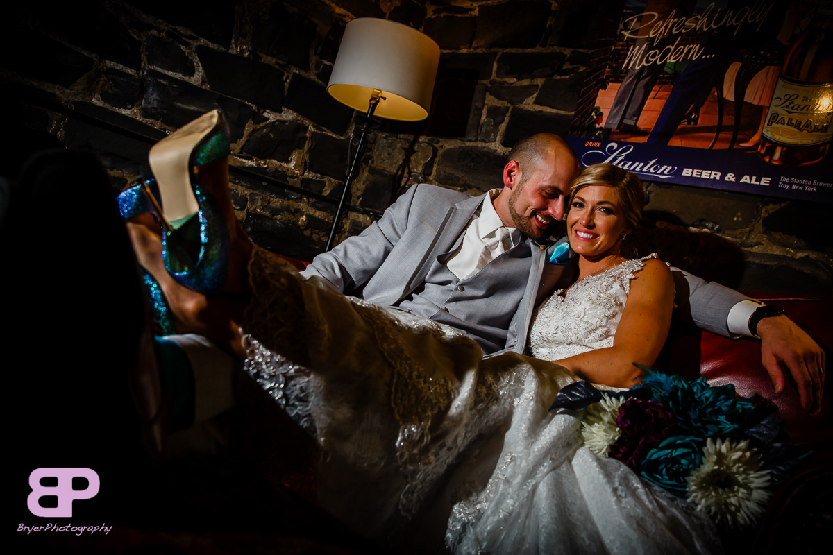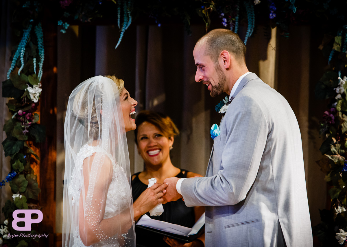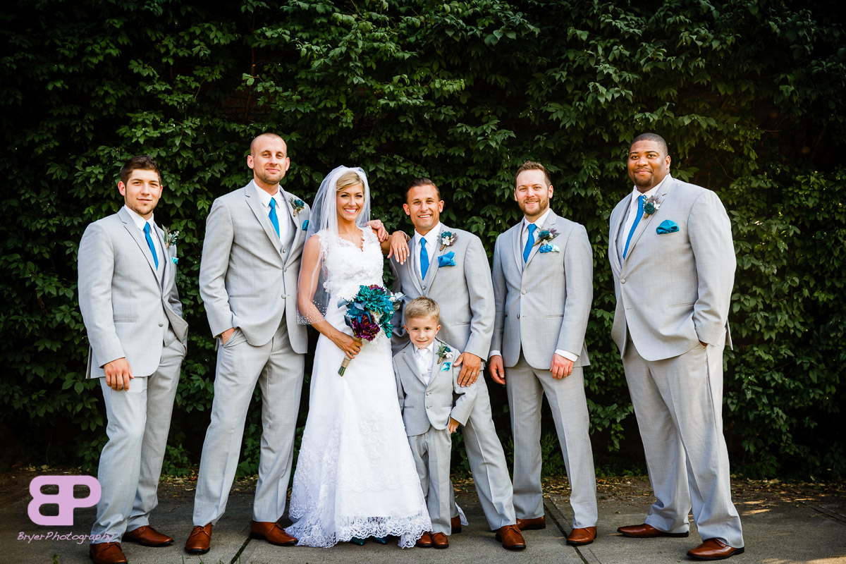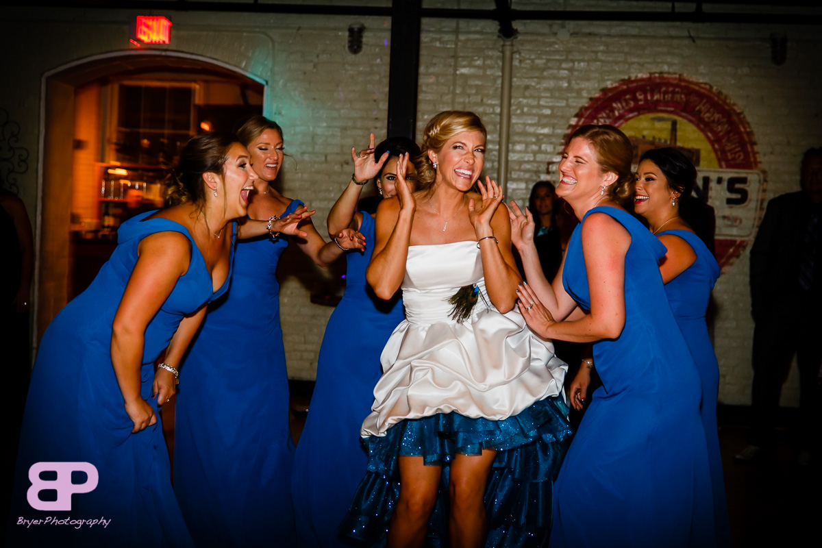 When you work with couples this much fun, it’s really not fair to call it work. ;) We started by dividing up where Nichole and Matt were getting ready so that they could each get a picture with one of their fur babies. After that, we met them at Revolution Hall which looked stunning, thanks in part to Nichole’s mom who HAND MAID the two story curtain for the stage they were married on (which we later found out was purchased with the promise of more business from the venue!) The decorations were beautiful, the bridal party was beautiful, and the ceremony was… you guessed it, beautiful. After the two said their i dos, we were off to take pictures with the bridal party. Now the entire bridal party was great, but frankly the ring bearer, Sawyer, brought ring-bearing to new levels. This kid not only carried the real rings, but he could work a pose with the smallest of direction. He could have a future career here. On to the reception though, Nichole and Matt rocked their intros with cool shades and guitar skills. The dancing continued into first dance, parent dances, dance sets, and even a surprise dance set from the girls in the bridal party which featured Nichole rocking a whole new fabulous dress (also made by her very talented mother!) Once we realized Matt had a Superman tee under his suit, we took an obligatory Clark Kent-esque photo in front of the phone booth. The two also braved trekking up hot, humid, and dark unfinished floors to take a few extra shots. A sparkler send off ended this beautiful day, but not before they got back to the dance floor to bust a few more moves. Nichole and Matt had an amazing wedding day… which is no surprise because they are truly an amazing couple.