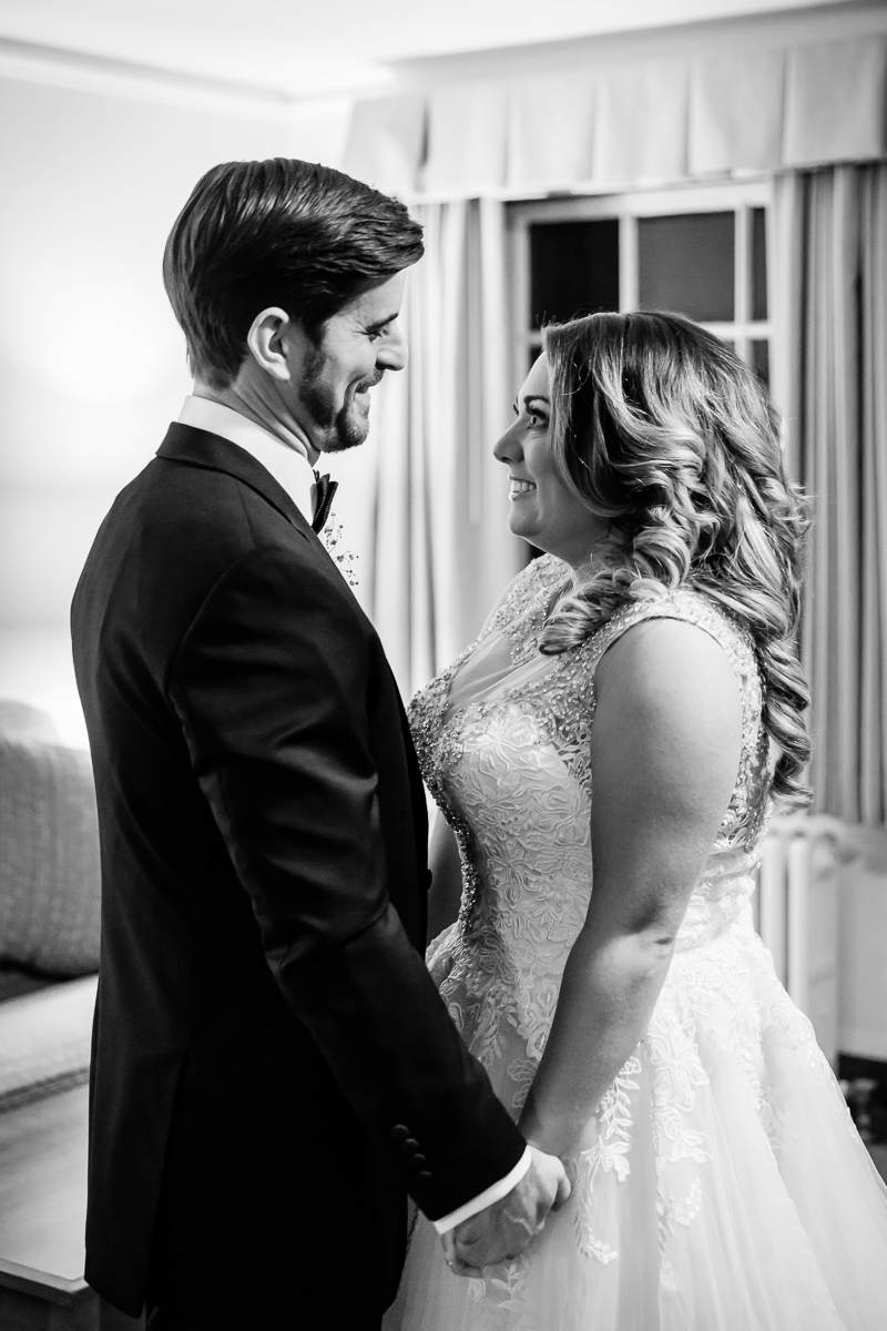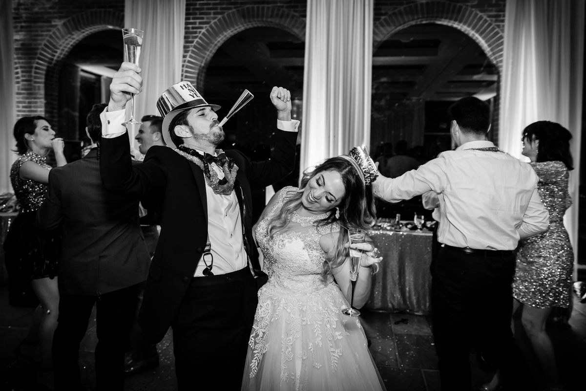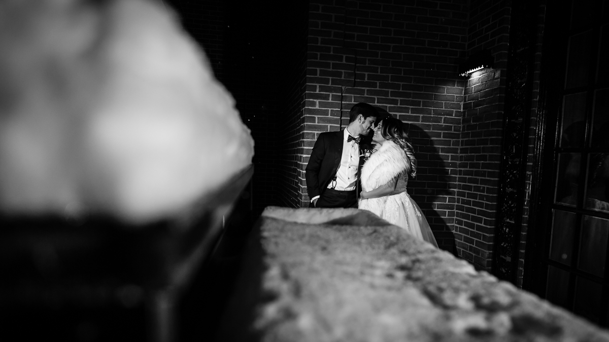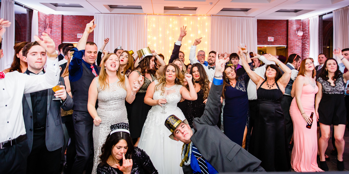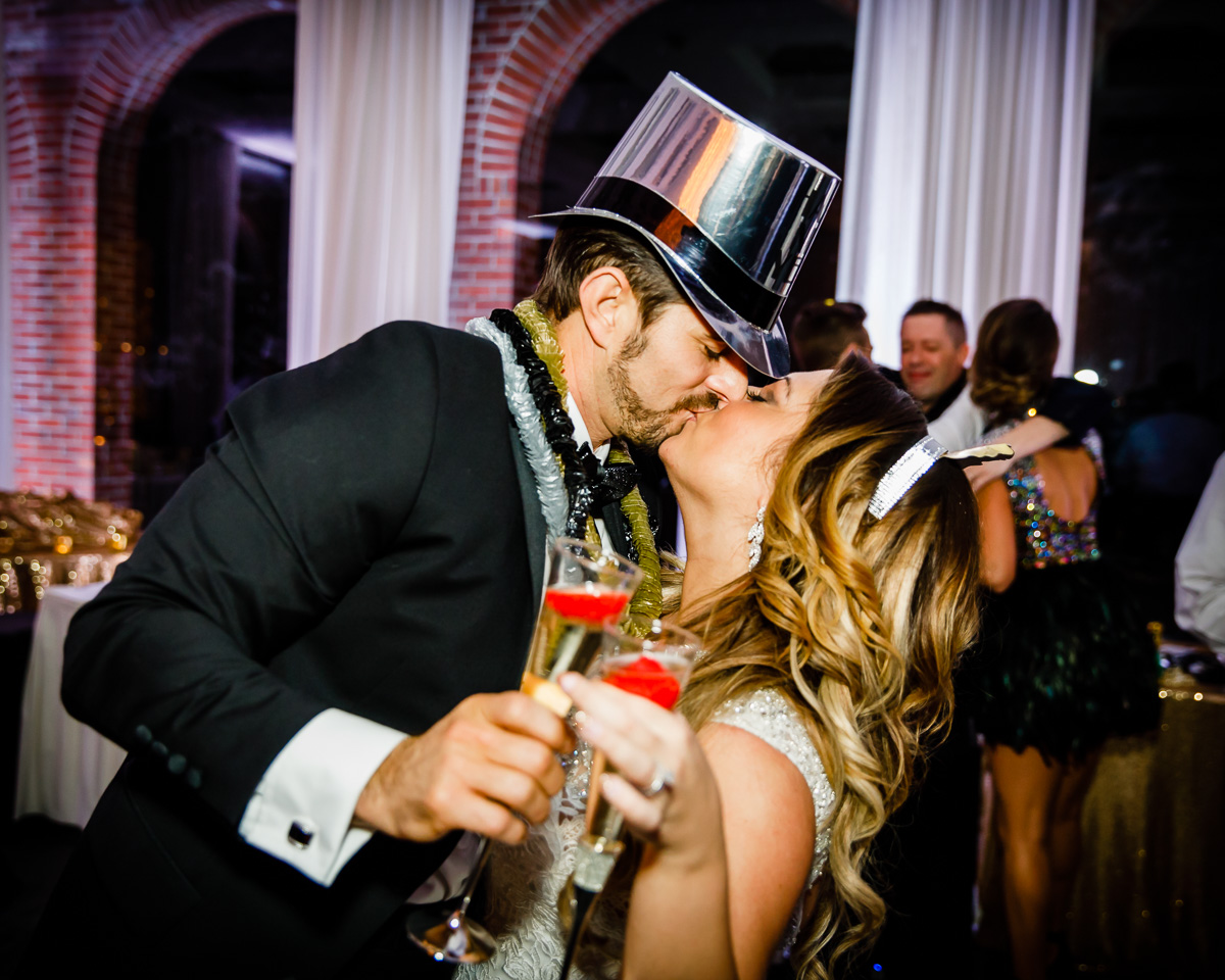 Well New Year’s Eve is meant to celebrate new beginnings, and Dana and Chet decided to take this opportunity to start their new beginning as husband and wife. (Not to mention this was a first for us too: our first time shooting a New Year’s wedding!) The two got married in the very cozy Gideon Putnam in Saratoga, just one door away from each other. After a first look there in the room, we headed down for family photos and a few quick shots at Hall of Springs where we were successful keeping the two relatively dry in the picturesque snow-filled landscape. The two had a sweet ceremony with vows they wrote for each other. After that, it was just a quick walk down the hall to where the party started and kept on rocking until well after midnight. Dances, toasts, and dinner gave way to an open dance floor that was busy all night. The photo booth was also a big hit. As if the night couldn’t get any better, a soft, heavy snow fell throughout the reception, creating a winter wonderland backdrop for the reception. We had so much fun ringing in the New Year with this fun couple and the friends and family that came to celebrate their marriage. We wish these two a happy and healthy New Year as newlyweds!