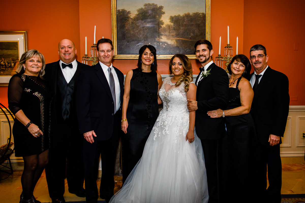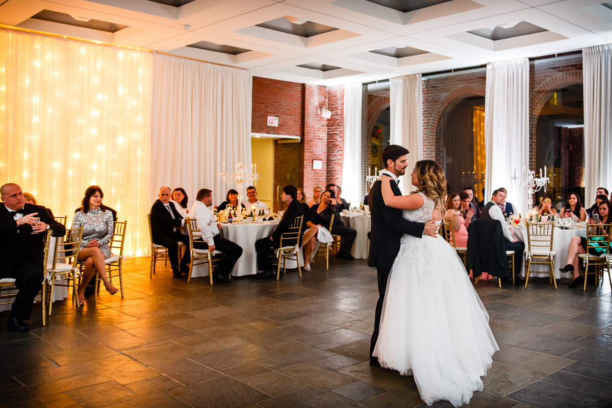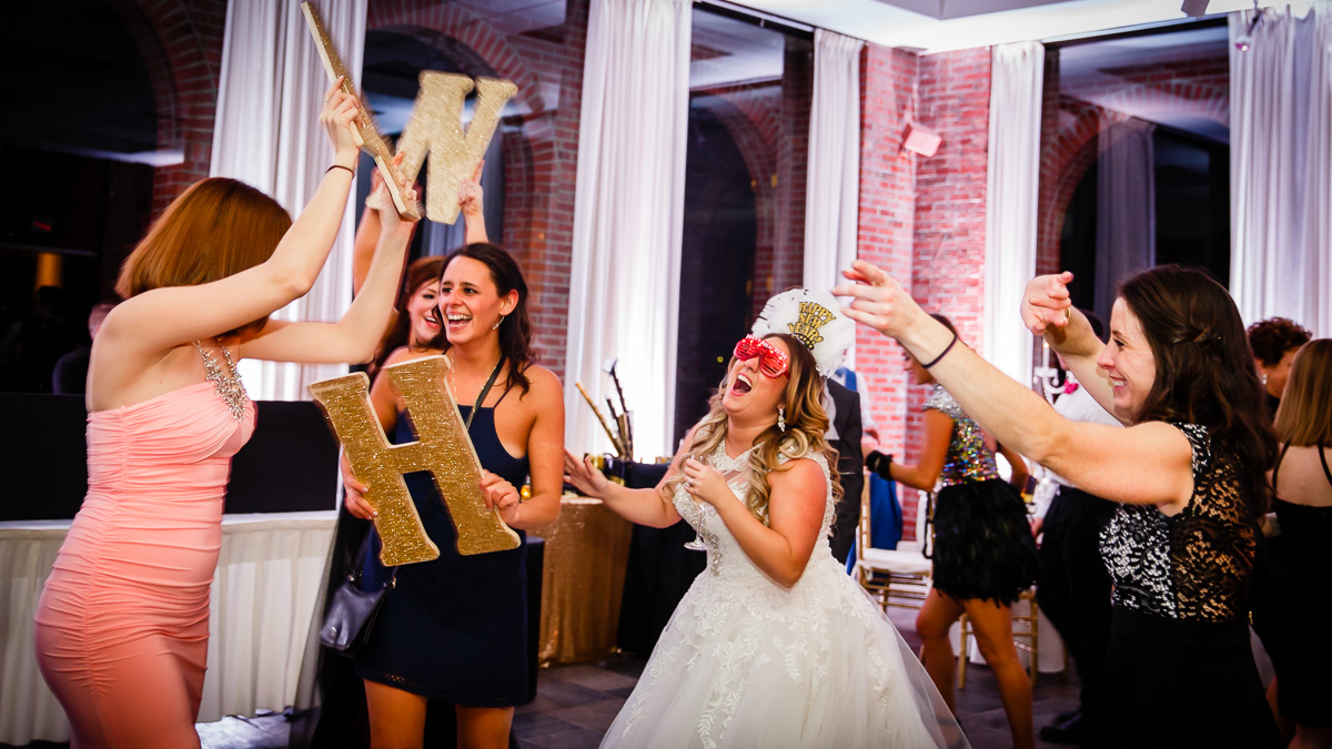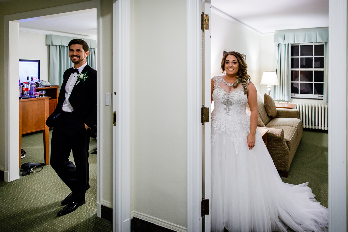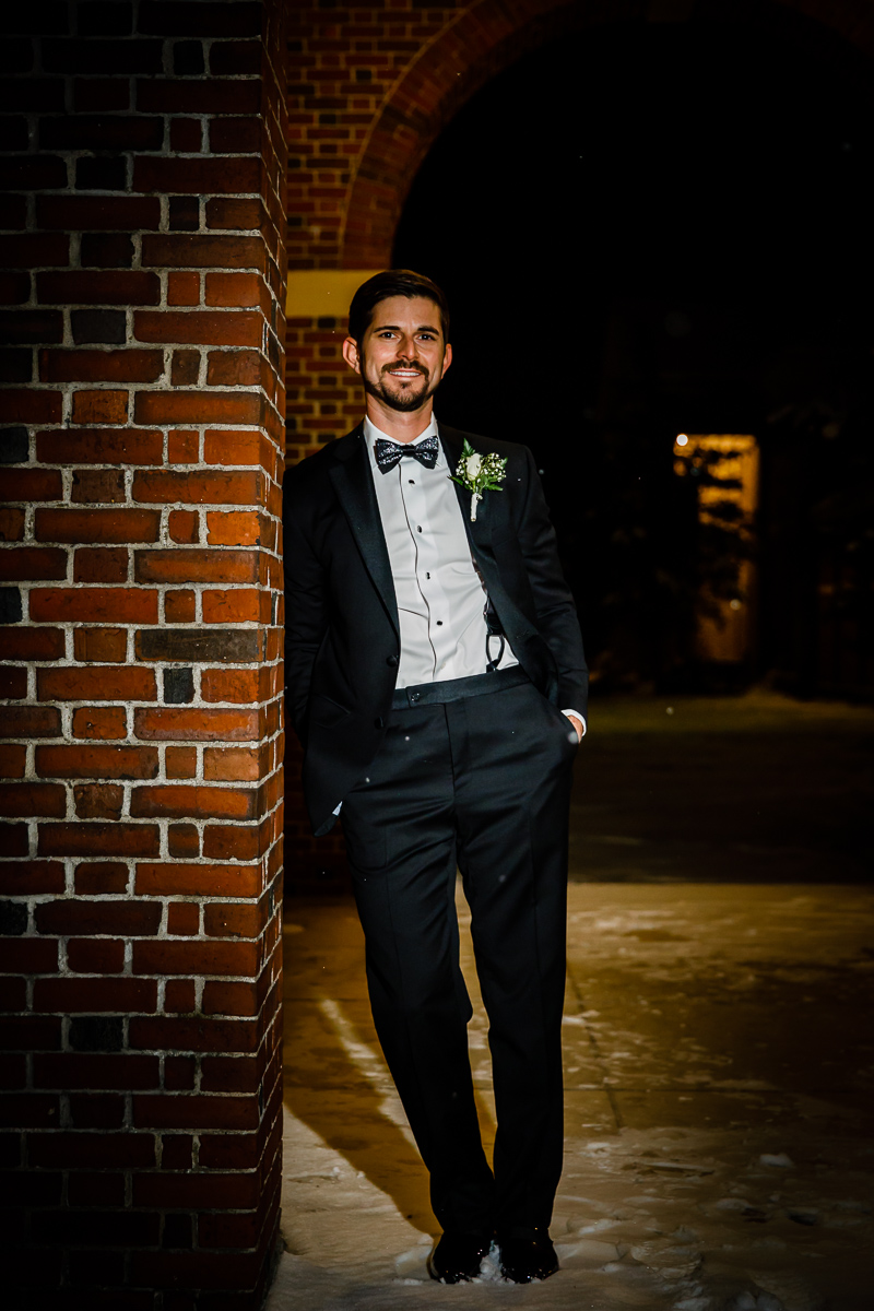 Well New Year’s Eve is meant to celebrate new beginnings, and Dana and Chet decided to take this opportunity to start their new beginning as husband and wife. (Not to mention this was a first for us too: our first time shooting a New Year’s wedding!) The two got married in the very cozy Gideon Putnam in Saratoga, just one door away from each other. After a first look there in the room, we headed down for family photos and a few quick shots at Hall of Springs where we were successful keeping the two relatively dry in the picturesque snow-filled landscape. The two had a sweet ceremony with vows they wrote for each other. After that, it was just a quick walk down the hall to where the party started and kept on rocking until well after midnight. Dances, toasts, and dinner gave way to an open dance floor that was busy all night. The photo booth was also a big hit. As if the night couldn’t get any better, a soft, heavy snow fell throughout the reception, creating a winter wonderland backdrop for the reception. We had so much fun ringing in the New Year with this fun couple and the friends and family that came to celebrate their marriage. We wish these two a happy and healthy New Year as newlyweds!