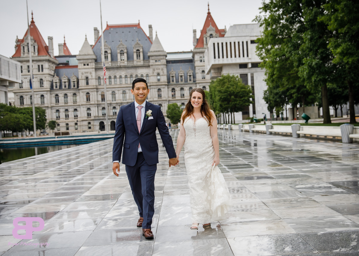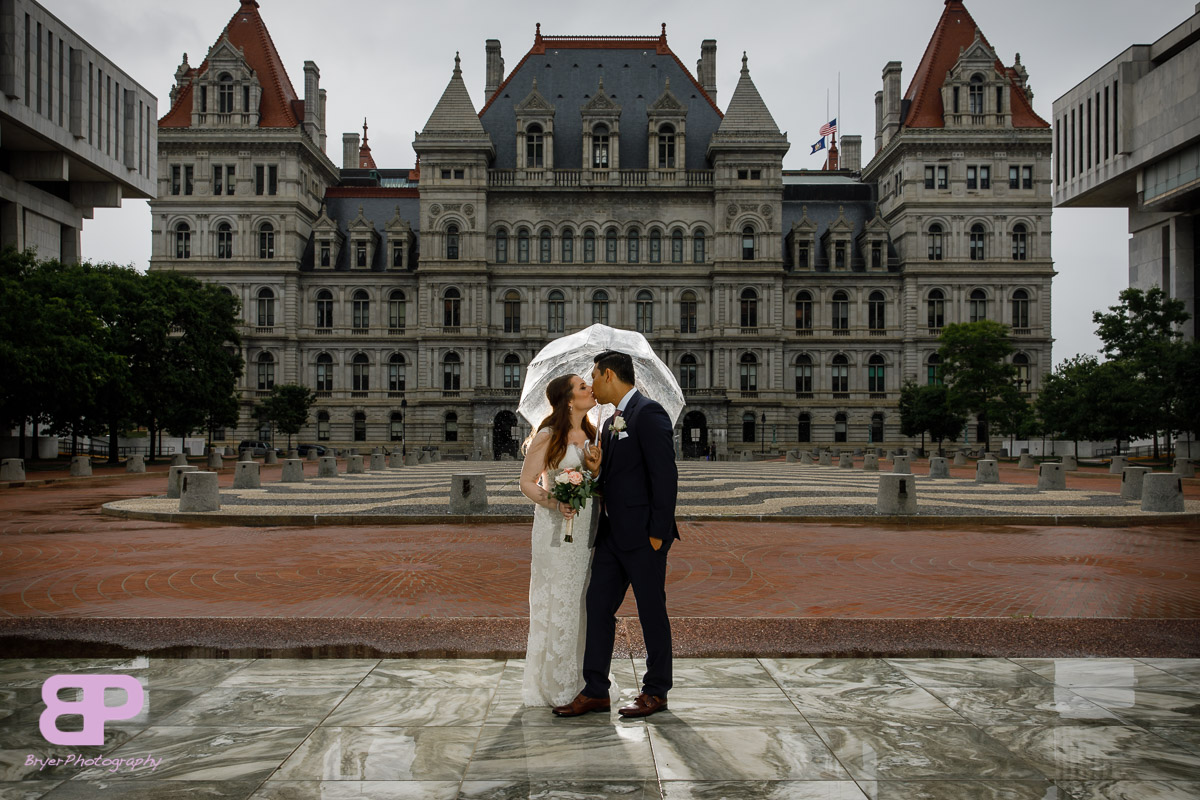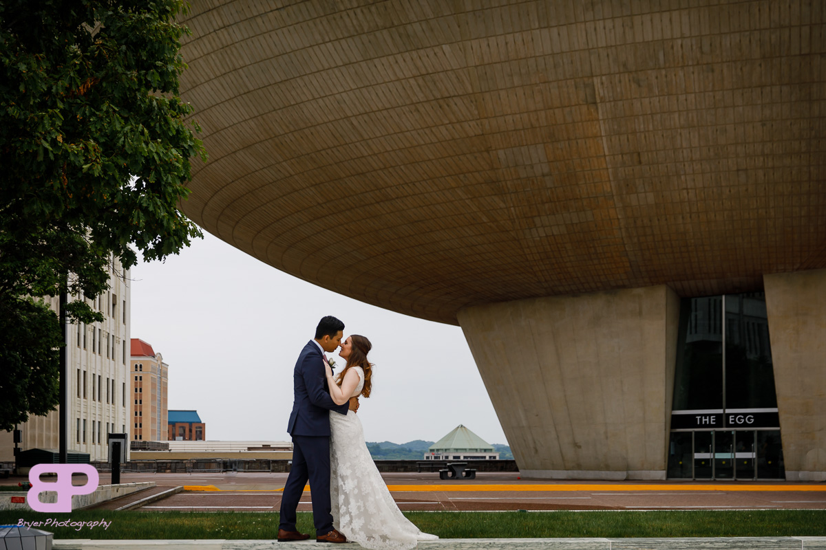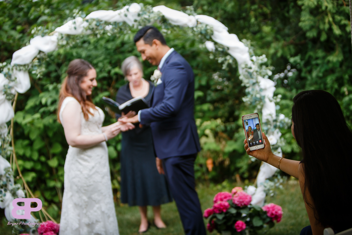 After the “lucky” showers passed for the day, we met Kristen and Sudip at the Empire Plaza for a sweet first look and photos. From there it was off to Kristen’s parents’ house for a small ceremony and reception. Although it was a small guest list, the two were surrounded by close friends and family, both in person and on FaceTime, as they exchanged their vows. Kristen and Sudip’s wedding day was a beautiful reminder of what weddings are really about. Their plans for their big day changed multiple times due to circumstances out of their control, but they embraced the key ingredients which are celebrating their love, honoring their journey to getting to that day, and committing to their road ahead together. The opulent decorations, fancy hand-passed hors d’oeuvres, and raging dance party are just icing on an already very sweet wedding cake.