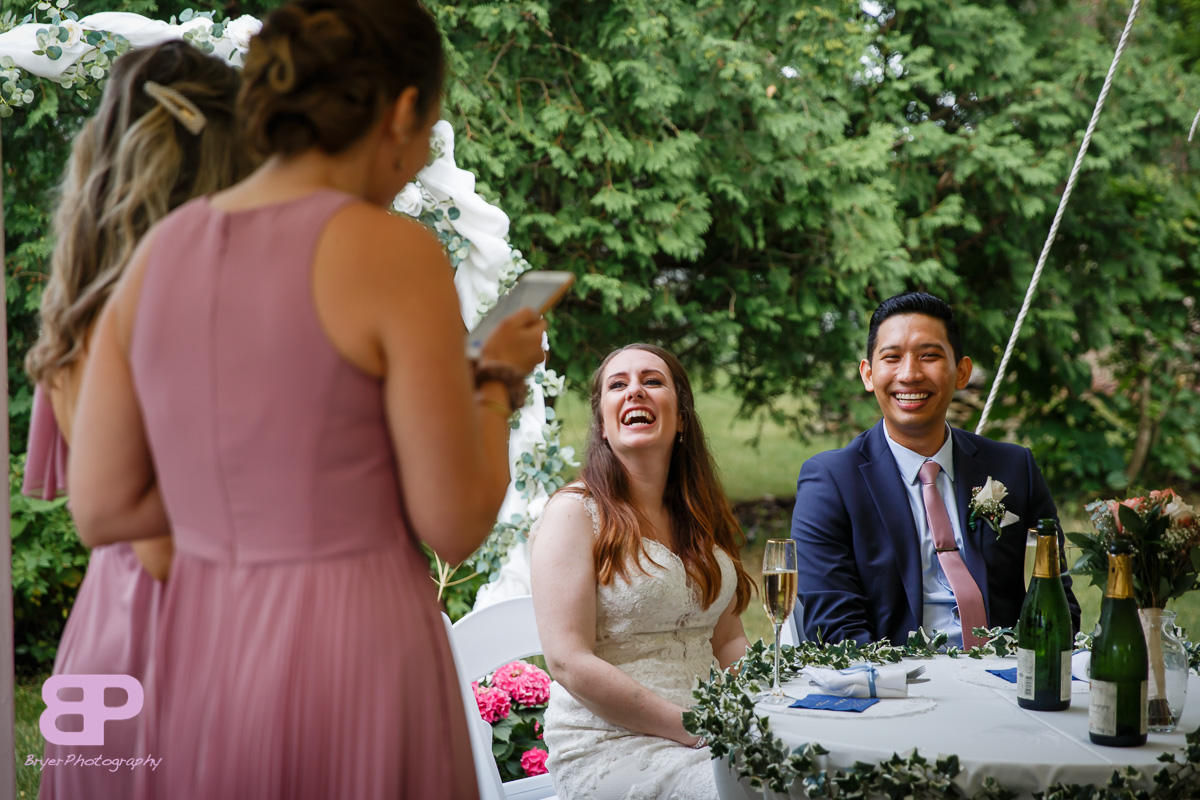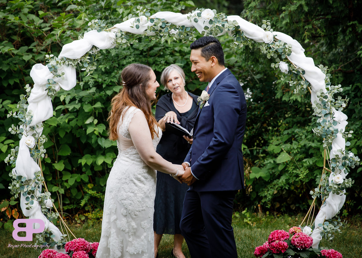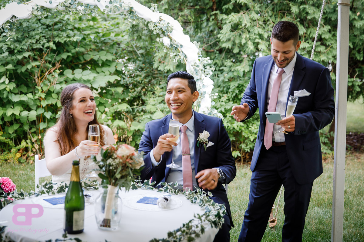 After the “lucky” showers passed for the day, we met Kristen and Sudip at the Empire Plaza for a sweet first look and photos. From there it was off to Kristen’s parents’ house for a small ceremony and reception. Although it was a small guest list, the two were surrounded by close friends and family, both in person and on FaceTime, as they exchanged their vows. Kristen and Sudip’s wedding day was a beautiful reminder of what weddings are really about. Their plans for their big day changed multiple times due to circumstances out of their control, but they embraced the key ingredients which are celebrating their love, honoring their journey to getting to that day, and committing to their road ahead together. The opulent decorations, fancy hand-passed hors d’oeuvres, and raging dance party are just icing on an already very sweet wedding cake.