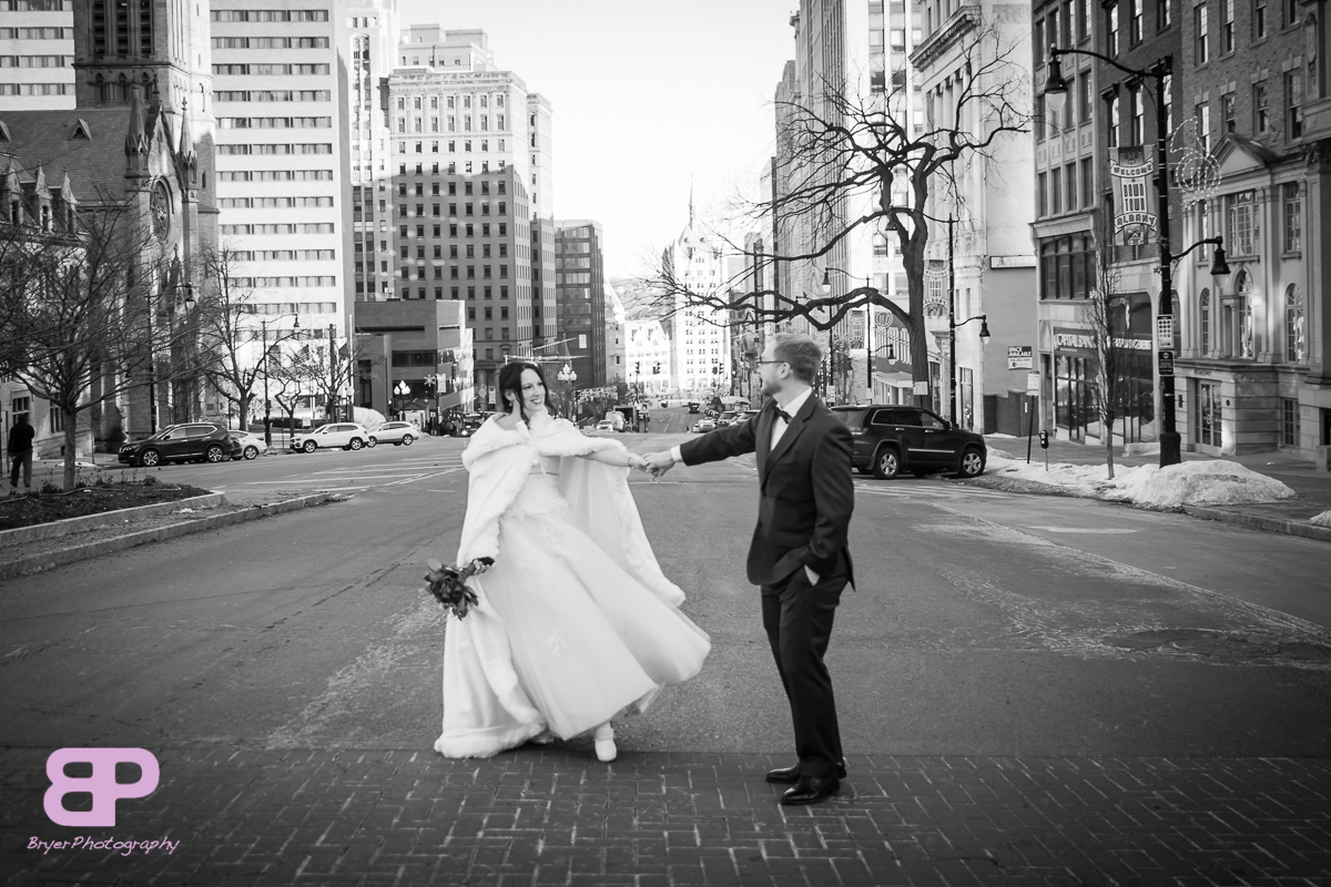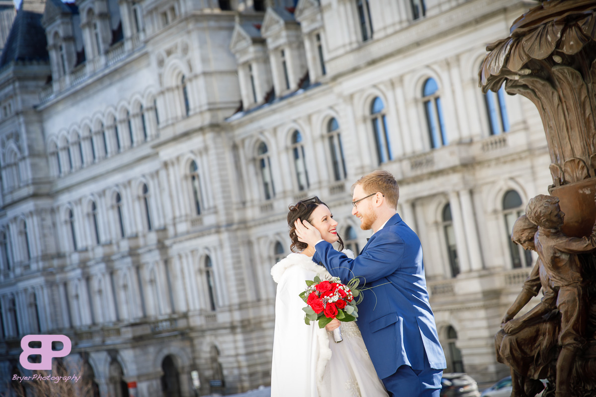 COVID has certainly forced couples to rethink their wedding day. We were so excited when Cassie and Sam reached out about their small Valentine’s Day wedding, we were excited. Being proud Albany residents meant they wanted to hit the major landmarks for photos. We met them at their house for a quick first look then braved the cold weather as we took pictures of the beautiful couple around some of the amazing architecture Albany has to offer. Then it was time to City Hall where the mayor conducted a very sweet and intimate ceremony. Round out the afternoon meeting up with the family at the gorgeous Renaissance Hotel. We wish Sam and Cassie the best as they are off to warmer weather!