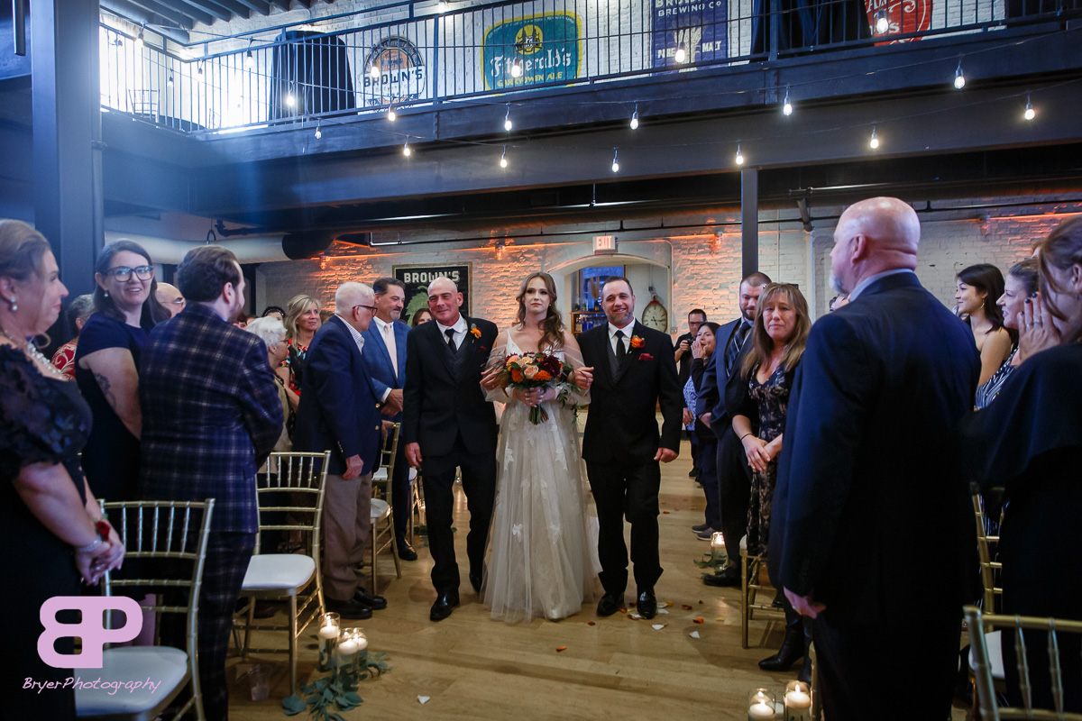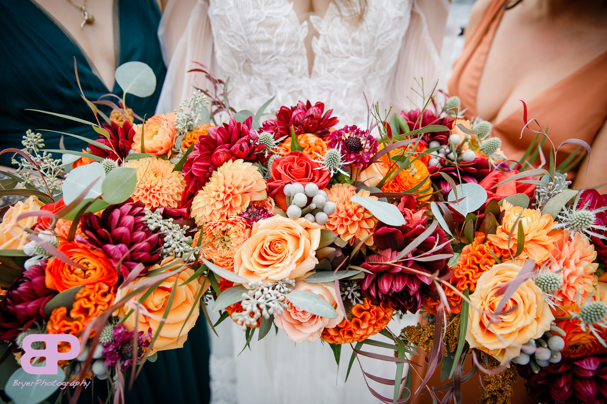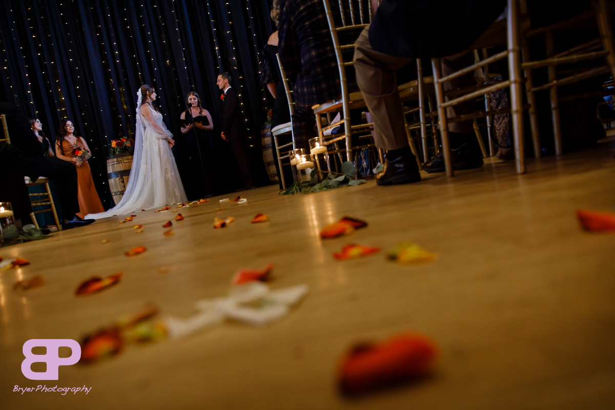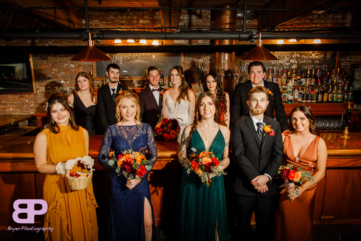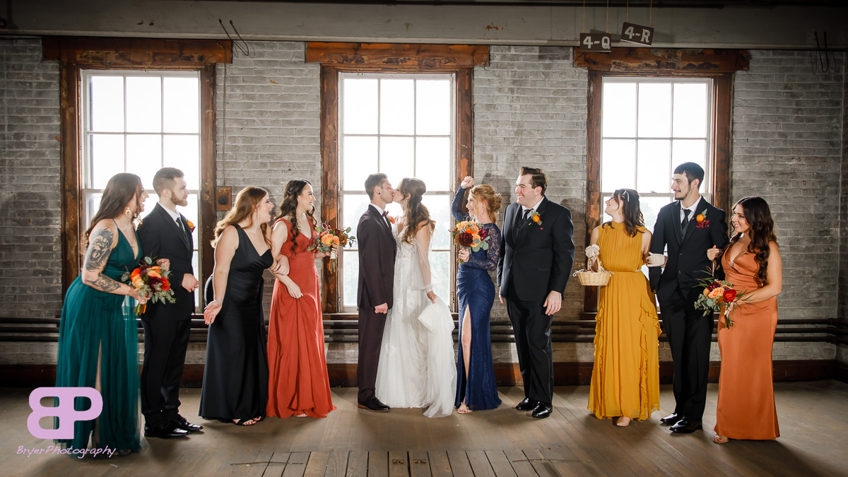 The skies cleared up for Ashley and Brandon’s wedding, making it a beautiful day both outside and in. Everything about this wedding shouted fall beauty from the hints of changing leaves on the trees, to the bridesmaids’ gem-toned dresses, to the gorgeous arrangement of flowers. We were so happy to see that the two had an adventurous bridal party that followed us all around Revolution Hall to get some great shots. The ceremony, officiated by a friend, revealed this day was a day several years in the making as these two had been high school sweethearts. We left the two still celebrating among family and friends, drinking their cat-themed signature drinks, and hitting the dance floor. We wish them all the best on what are sure to be several amazing chapters of their lives to come!