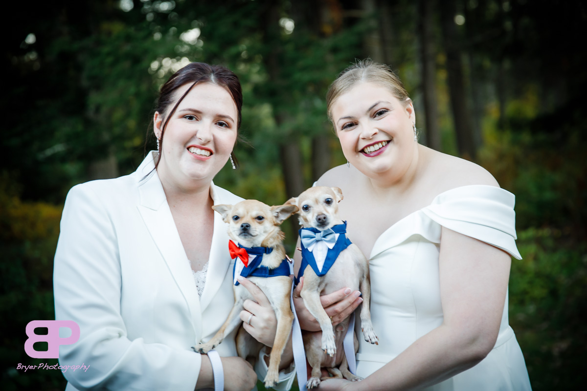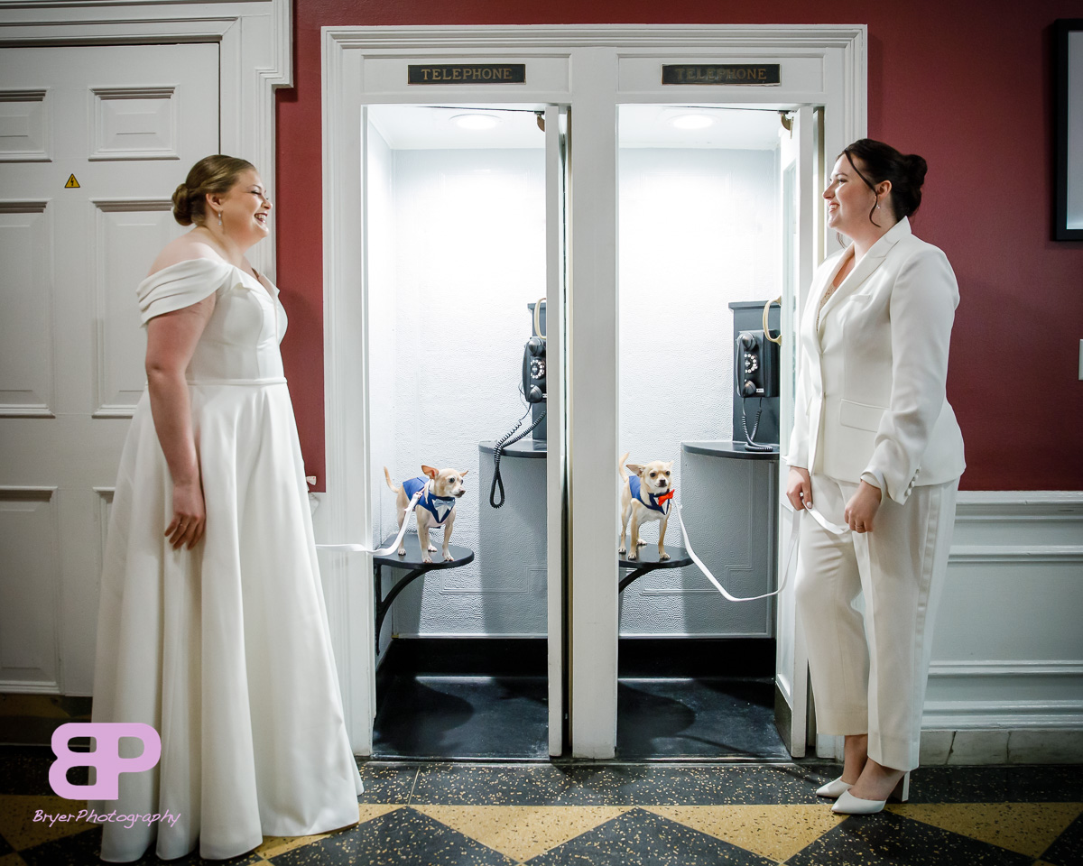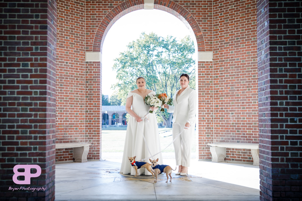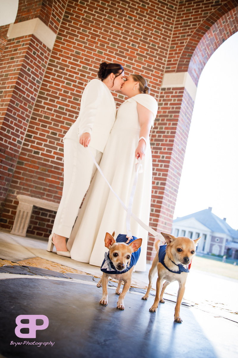 Jess and Alicia had a stunning wedding day filled with blue skies, crisp air, and warm smiles. The two got ready together at the Gideon Putnam with their family and bridal party. The two had a sweet first look with each other as well as their fur babies, Tiny and Finney. We headed to the Hall of Springs for some photos in the iconic arches. They had a beautiful ceremony where they exchanged personal vows over their dogs’ cries of joy. The reception kicked off with our first ever choreographed tap first dance. And if that wasn’t enough, we were treated to a second choreographed dance for the father-daughter dances. Jess and Alicia changed into cute sneakers after shedding their heels and tap shoes. After a delicious meal, it was time to light up the dance floor. The dance floor opened with a roar to Dancing Queen(s). Sofia, the flower girl, finally got to bust her moves which she had been waiting for all day. We left Jess and Alicia still dancing the night away with family and friends. We know these two are going to have a great rest of their love story and we were honored to be part of this chapter.