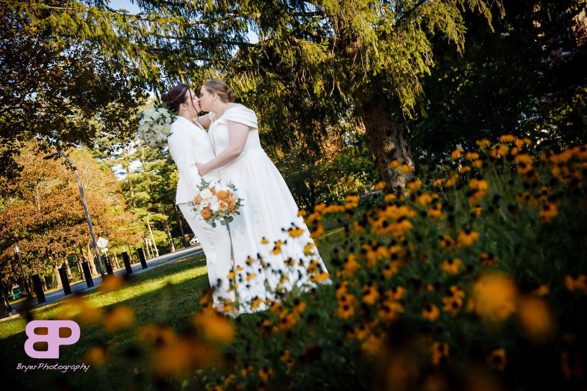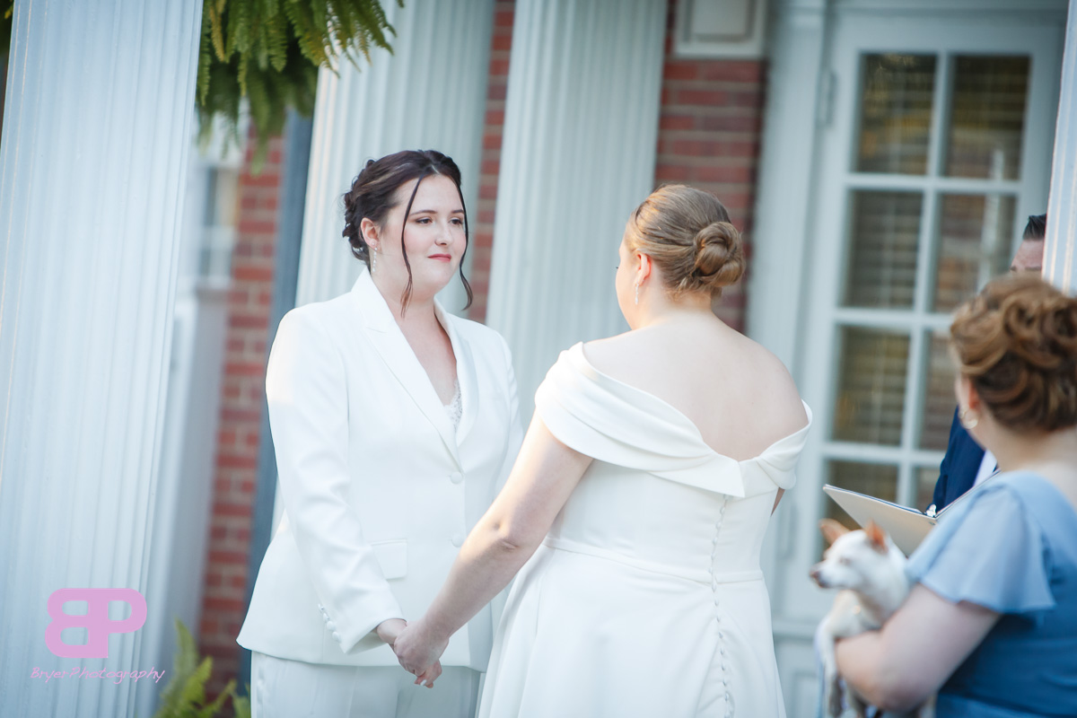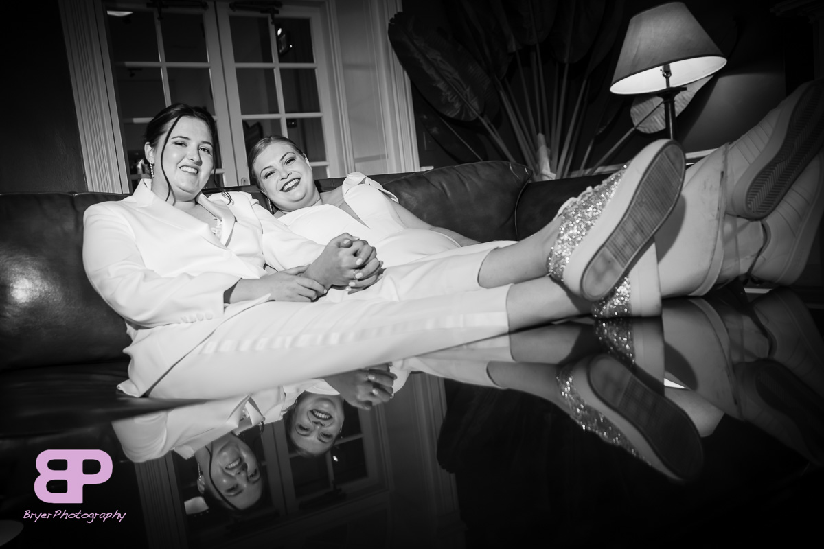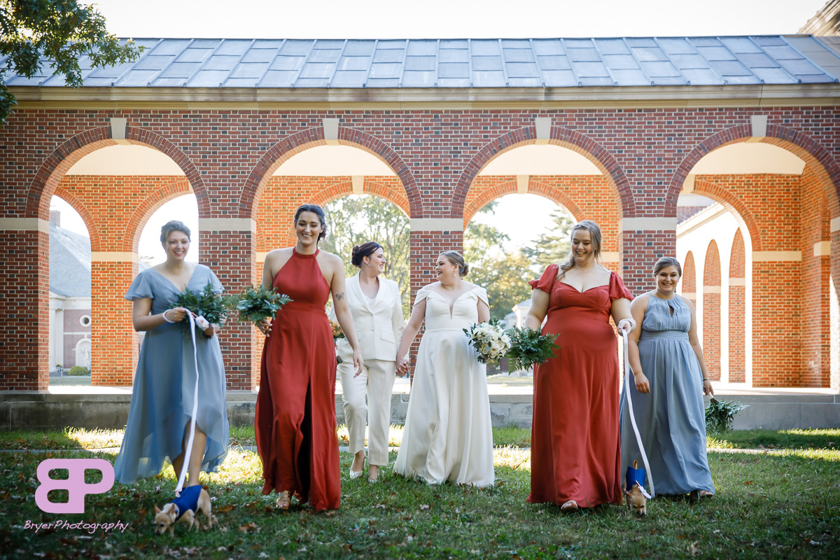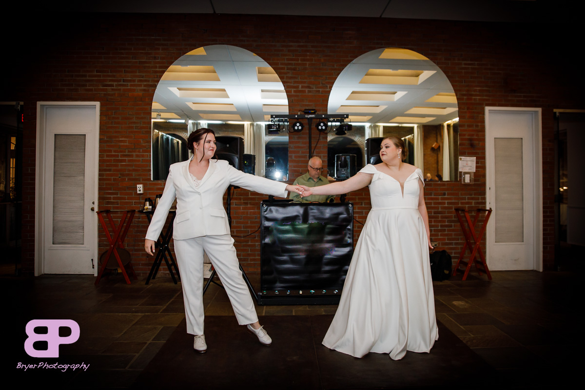 Jess and Alicia had a stunning wedding day filled with blue skies, crisp air, and warm smiles. The two got ready together at the Gideon Putnam with their family and bridal party. The two had a sweet first look with each other as well as their fur babies, Tiny and Finney. We headed to the Hall of Springs for some photos in the iconic arches. They had a beautiful ceremony where they exchanged personal vows over their dogs’ cries of joy. The reception kicked off with our first ever choreographed tap first dance. And if that wasn’t enough, we were treated to a second choreographed dance for the father-daughter dances. Jess and Alicia changed into cute sneakers after shedding their heels and tap shoes. After a delicious meal, it was time to light up the dance floor. The dance floor opened with a roar to Dancing Queen(s). Sofia, the flower girl, finally got to bust her moves which she had been waiting for all day. We left Jess and Alicia still dancing the night away with family and friends. We know these two are going to have a great rest of their love story and we were honored to be part of this chapter.