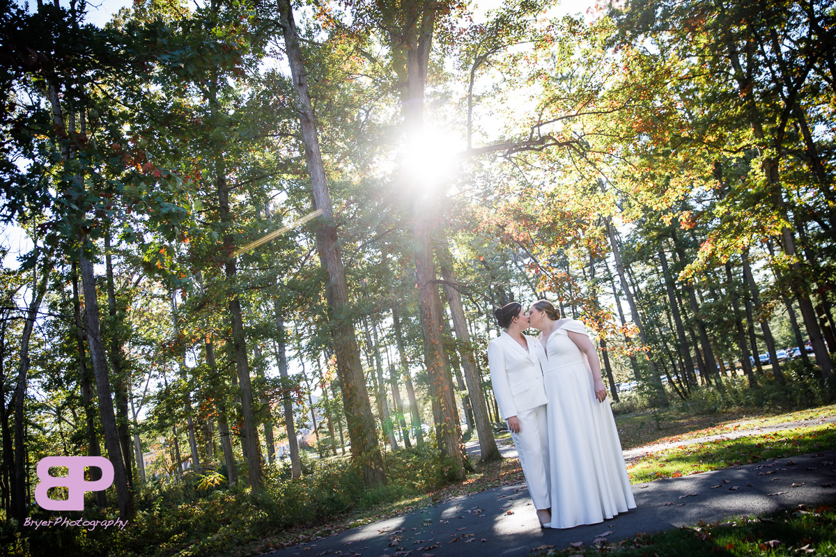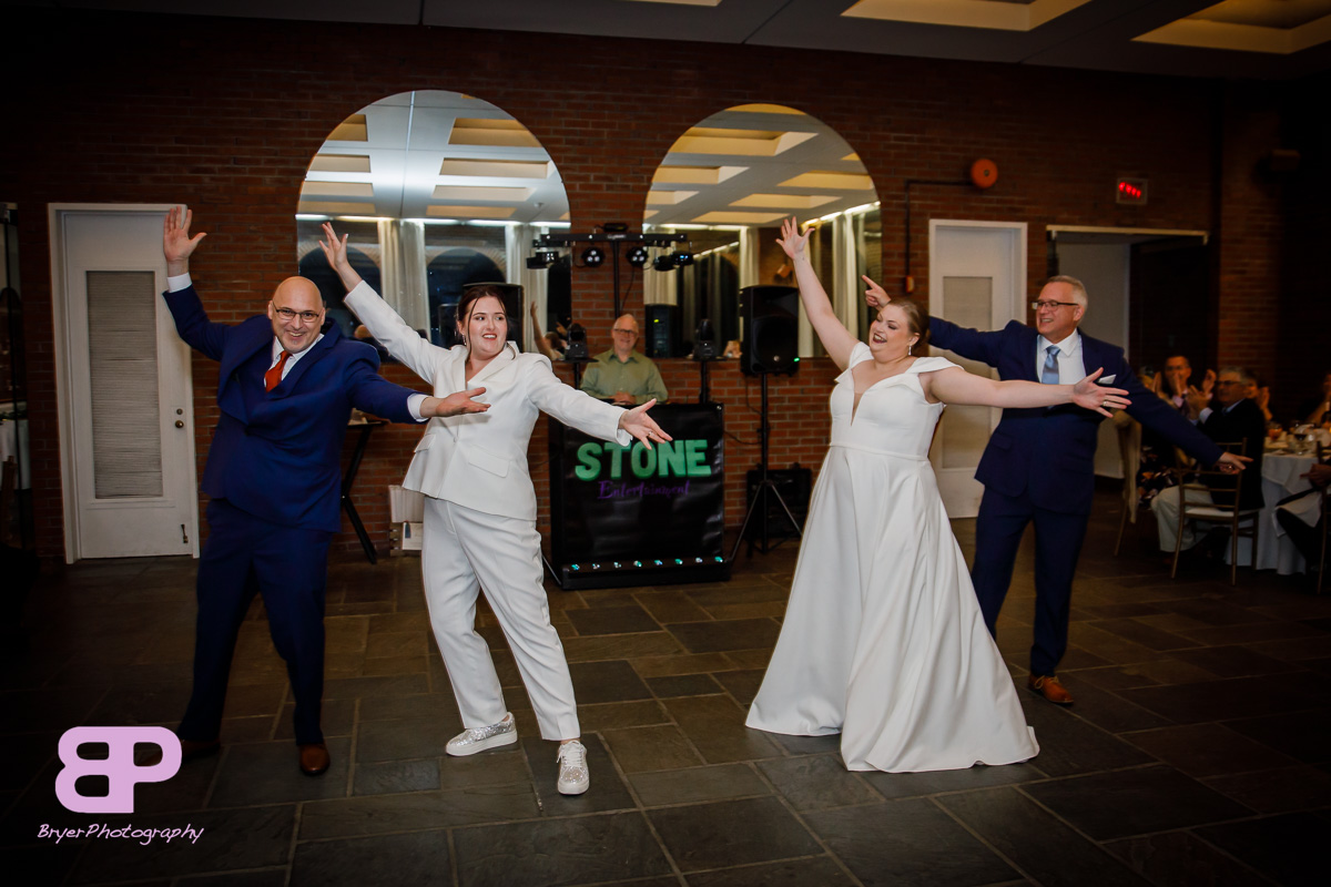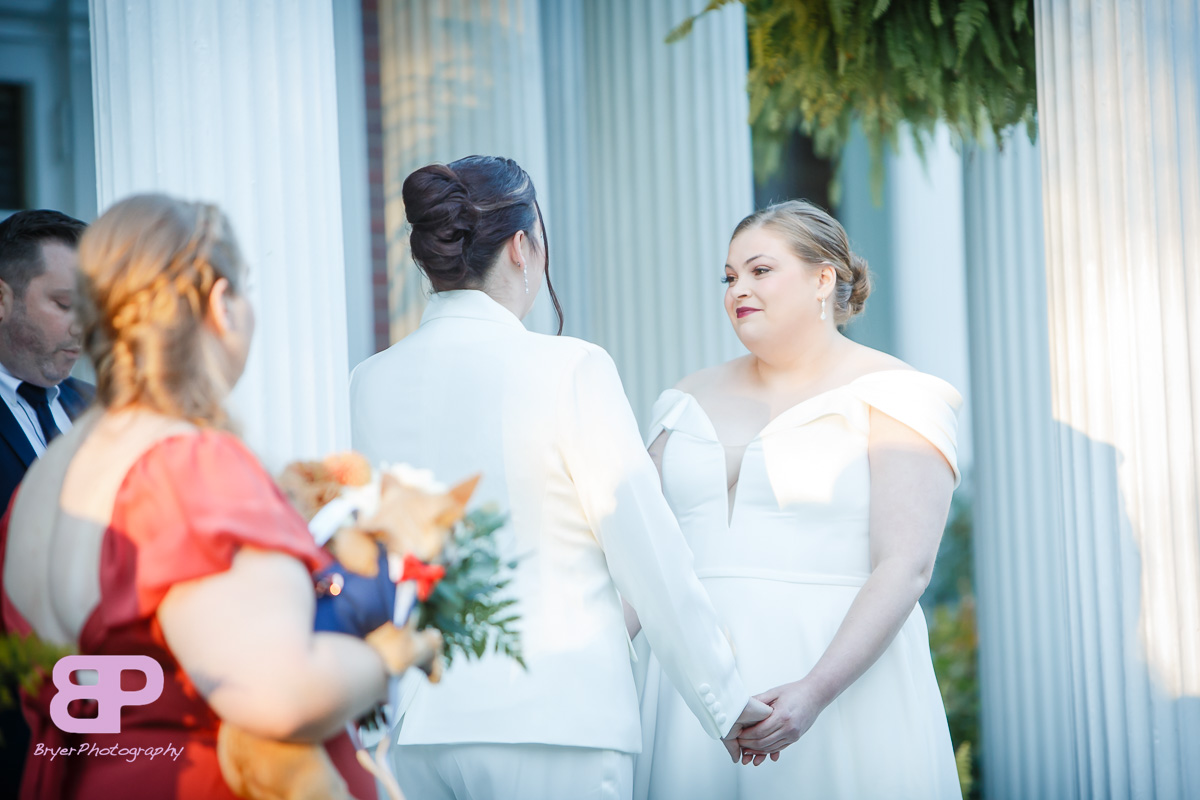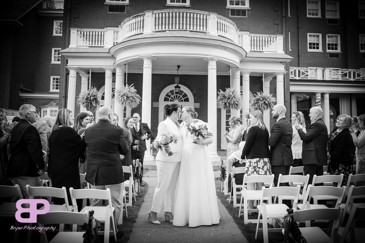 Jess and Alicia had a stunning wedding day filled with blue skies, crisp air, and warm smiles. The two got ready together at the Gideon Putnam with their family and bridal party. The two had a sweet first look with each other as well as their fur babies, Tiny and Finney. We headed to the Hall of Springs for some photos in the iconic arches. They had a beautiful ceremony where they exchanged personal vows over their dogs’ cries of joy. The reception kicked off with our first ever choreographed tap first dance. And if that wasn’t enough, we were treated to a second choreographed dance for the father-daughter dances. Jess and Alicia changed into cute sneakers after shedding their heels and tap shoes. After a delicious meal, it was time to light up the dance floor. The dance floor opened with a roar to Dancing Queen(s). Sofia, the flower girl, finally got to bust her moves which she had been waiting for all day. We left Jess and Alicia still dancing the night away with family and friends. We know these two are going to have a great rest of their love story and we were honored to be part of this chapter.