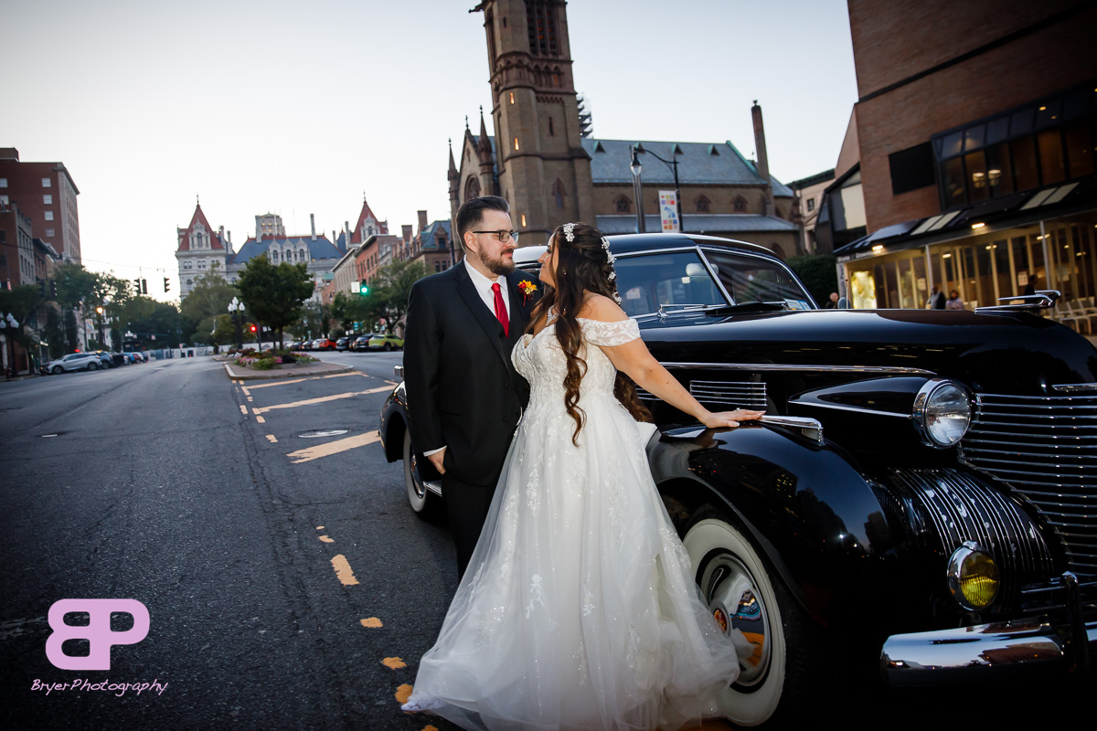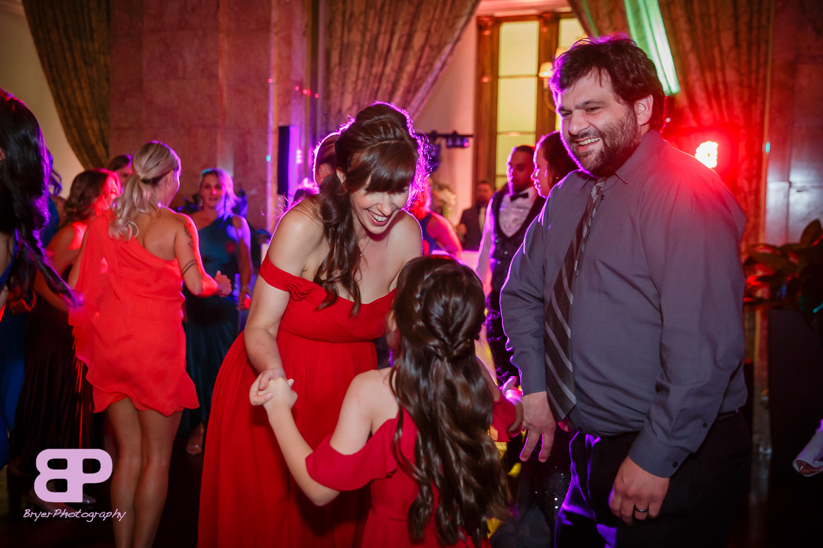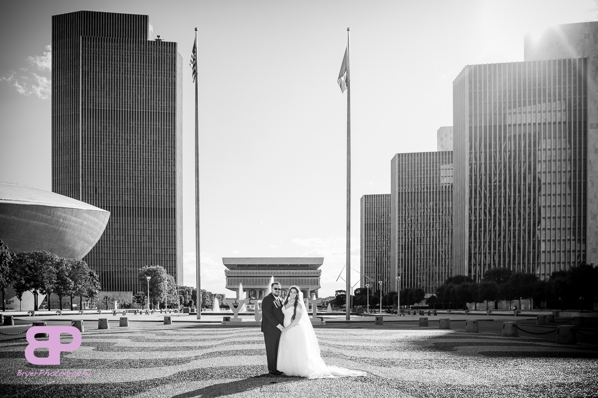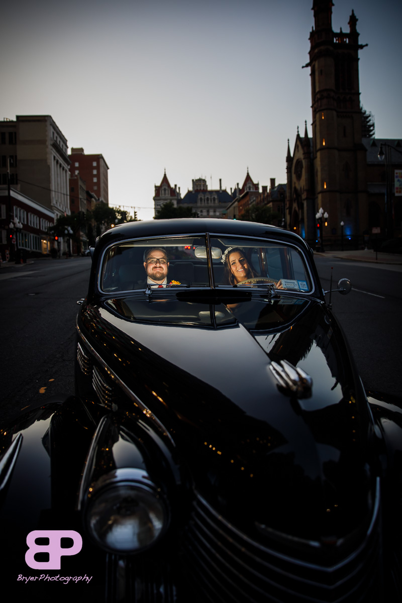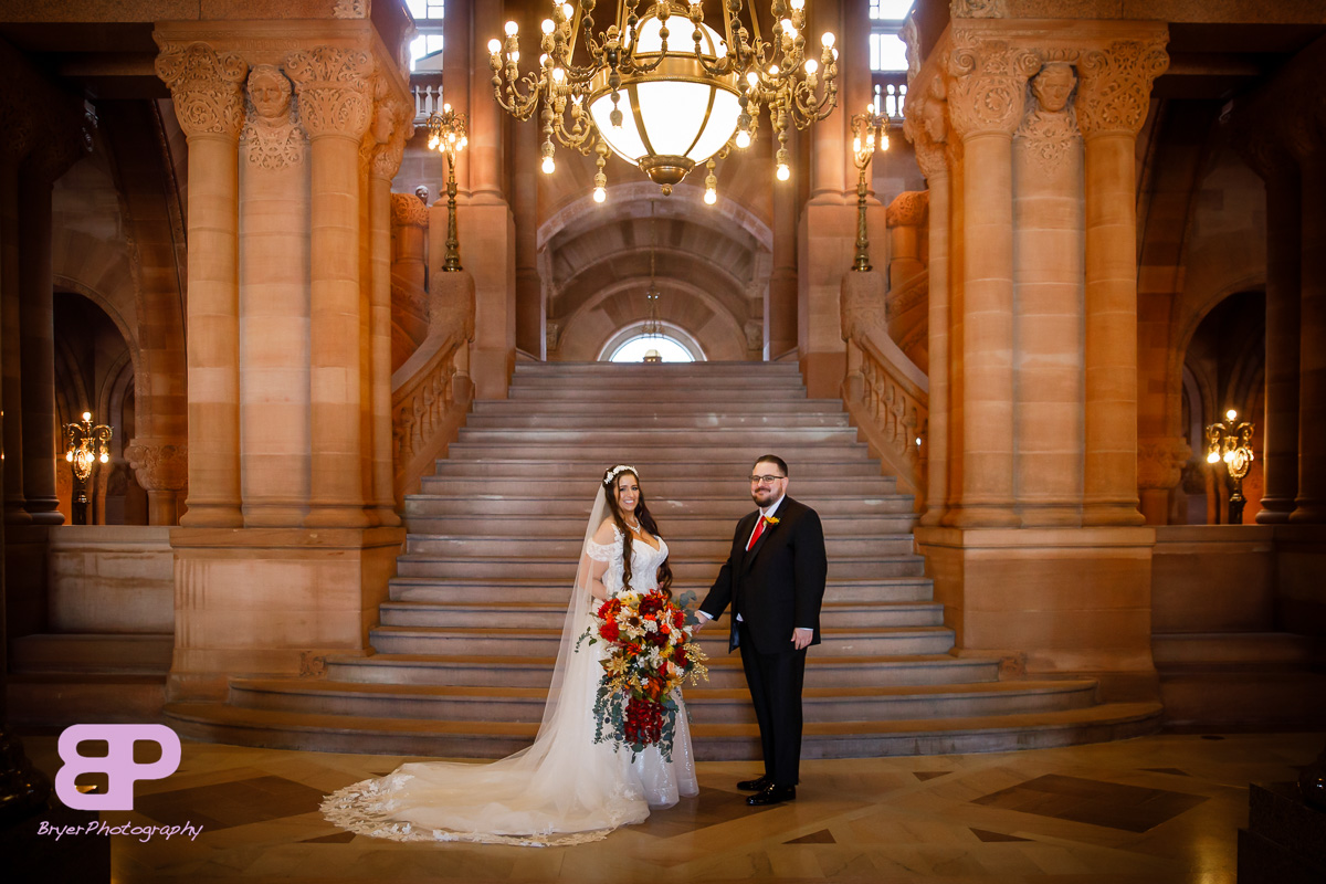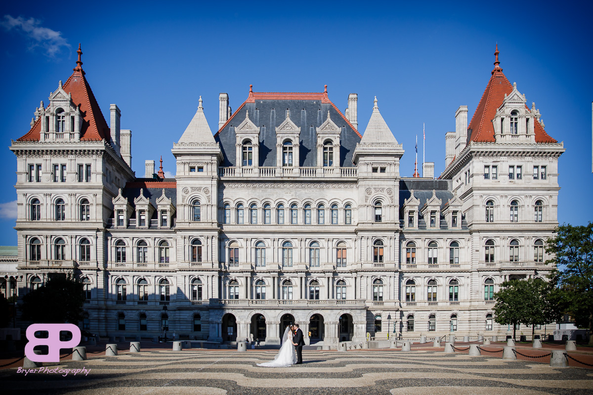 All of the elements aligned for Genevieve and Aaron’s wedding day. The two, both looking like a million bucks, fittingly had a beautiful first look at the million dollar staircase at the State Capitol, followed by some pictures at the State Plaza. Love was in the air both at the I Love NY tourist op and every other photo location we stopped at for these two. We then headed to the State Room which was adorned with all sorts of beautiful research decor from the petrie dish place cards, to the microscope centerpieces, to the science-theme etched wedding cake, to the hands on science stations to the flower girls carrying their flowers in flasks. Science was everywhere! Dr. Gen and Aaron had a beautiful ceremony, officiated by friends, that continued the theme, culminating in personalized vows and an exchanging of rings. Then the celebrating began. After cocktail hour, the two were introduced as husband and wife and started the party with a first dance and bridal party toasts. After dinner, was a dance floor was opened with a first for us- over a dozen Zumba dancers passionately doing a choreographed routine to Ptibull’s “Fireball.” It was the best advertisement for a fitness class we’ve ever seen! And from there, the dance floor never stopped! We had such a wonderful time getting to know this amazing couple throughout the day, and seeing these two celebrate their love, it doesn’t take a doctorate to see that these two have formed an unbreakable bond.