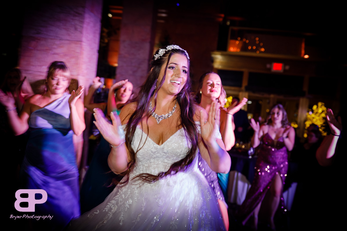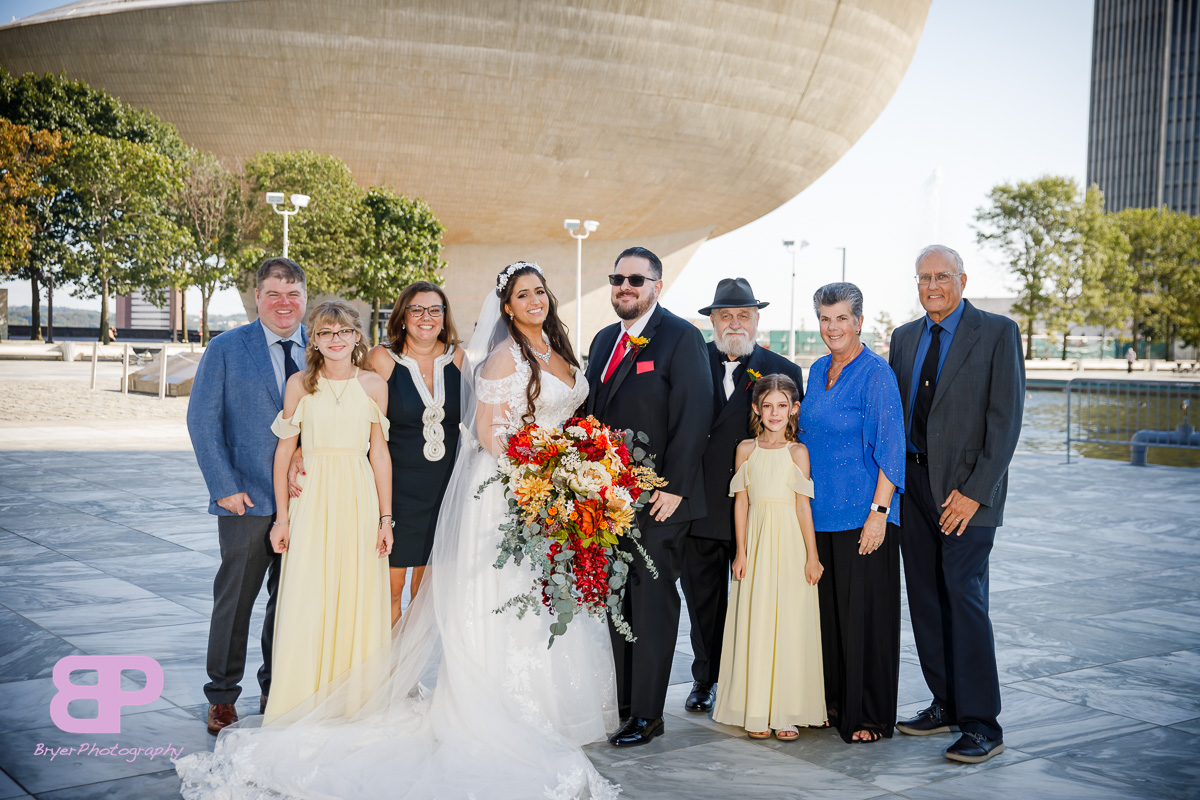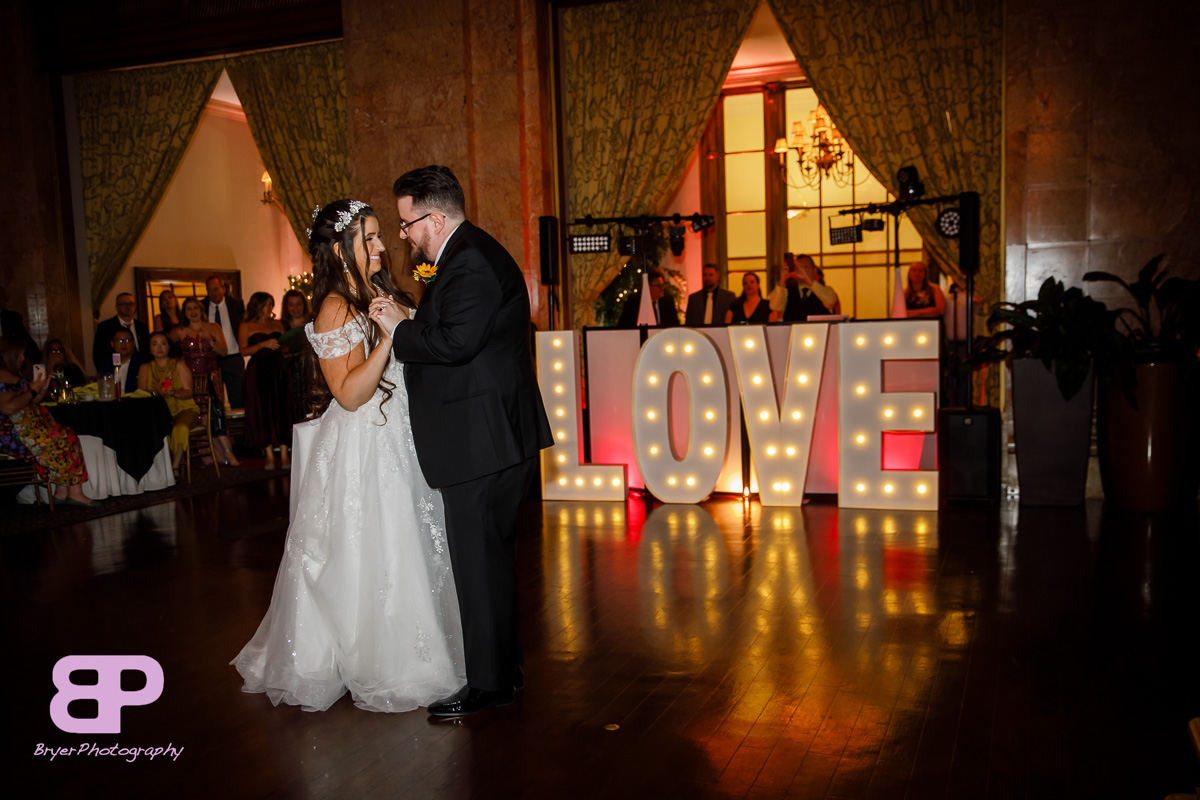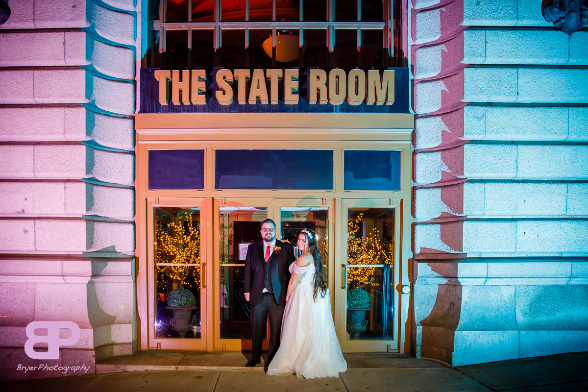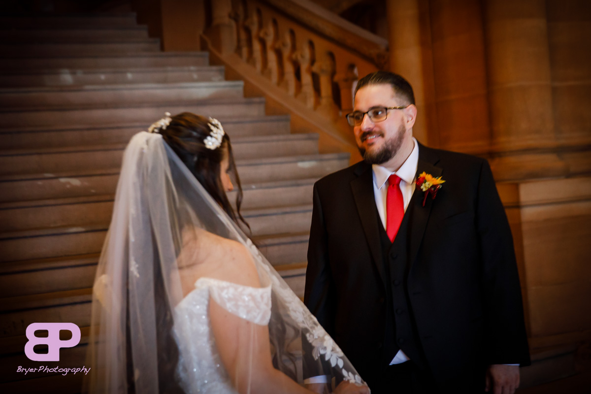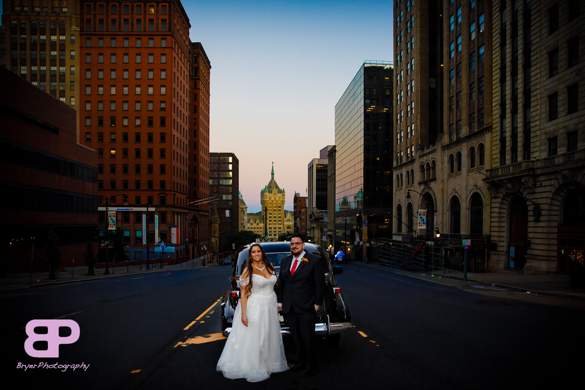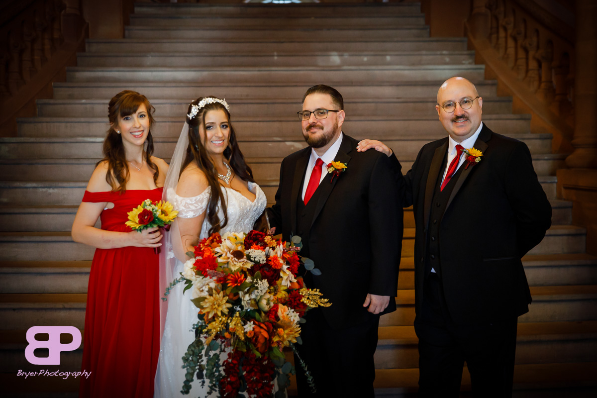 All of the elements aligned for Genevieve and Aaron’s wedding day. The two, both looking like a million bucks, fittingly had a beautiful first look at the million dollar staircase at the State Capitol, followed by some pictures at the State Plaza. Love was in the air both at the I Love NY tourist op and every other photo location we stopped at for these two. We then headed to the State Room which was adorned with all sorts of beautiful research decor from the petrie dish place cards, to the microscope centerpieces, to the science-theme etched wedding cake, to the hands on science stations to the flower girls carrying their flowers in flasks. Science was everywhere! Dr. Gen and Aaron had a beautiful ceremony, officiated by friends, that continued the theme, culminating in personalized vows and an exchanging of rings. Then the celebrating began. After cocktail hour, the two were introduced as husband and wife and started the party with a first dance and bridal party toasts. After dinner, was a dance floor was opened with a first for us- over a dozen Zumba dancers passionately doing a choreographed routine to Ptibull’s “Fireball.” It was the best advertisement for a fitness class we’ve ever seen! And from there, the dance floor never stopped! We had such a wonderful time getting to know this amazing couple throughout the day, and seeing these two celebrate their love, it doesn’t take a doctorate to see that these two have formed an unbreakable bond.
