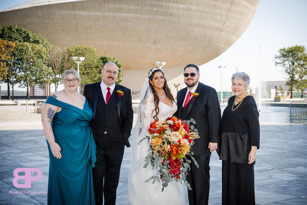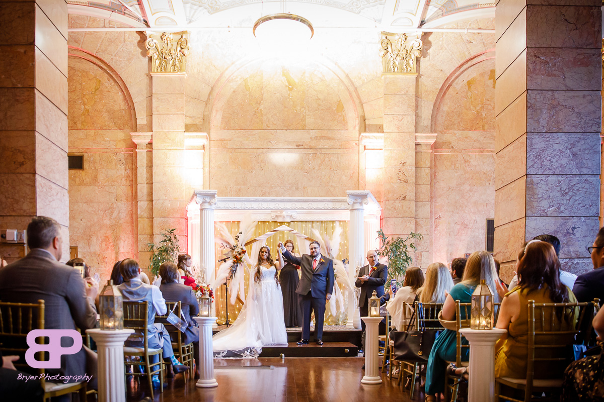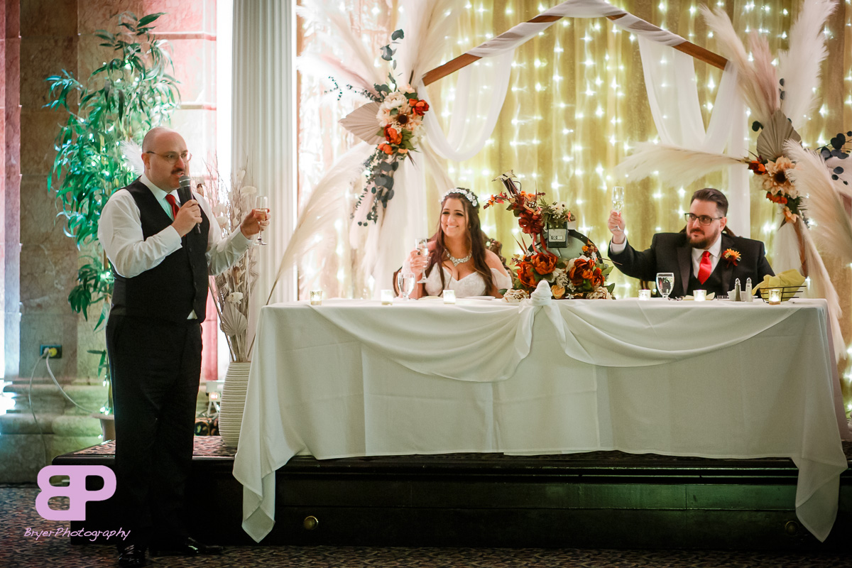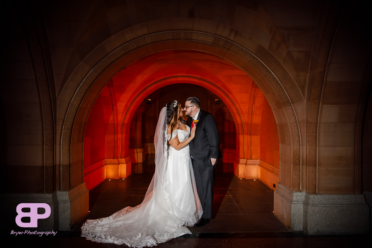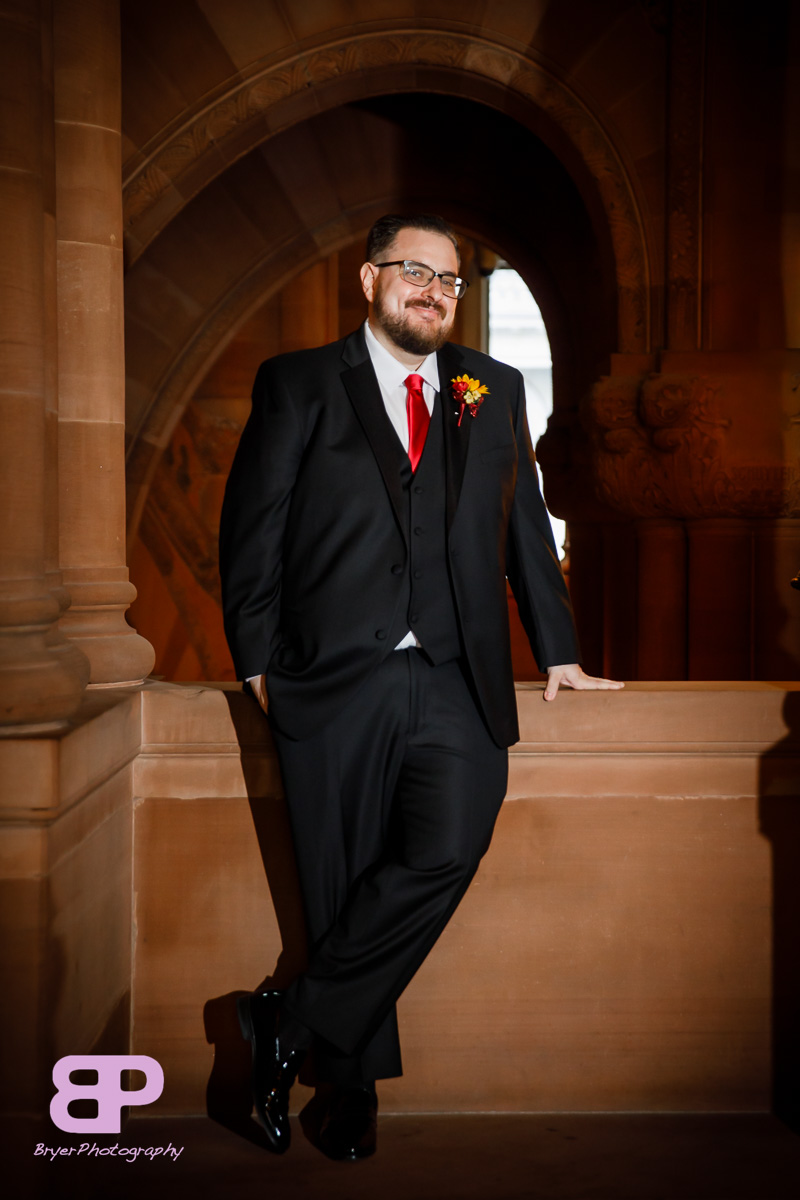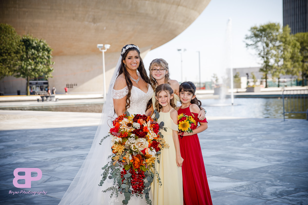 All of the elements aligned for Genevieve and Aaron’s wedding day. The two, both looking like a million bucks, fittingly had a beautiful first look at the million dollar staircase at the State Capitol, followed by some pictures at the State Plaza. Love was in the air both at the I Love NY tourist op and every other photo location we stopped at for these two. We then headed to the State Room which was adorned with all sorts of beautiful research decor from the petrie dish place cards, to the microscope centerpieces, to the science-theme etched wedding cake, to the hands on science stations to the flower girls carrying their flowers in flasks. Science was everywhere! Dr. Gen and Aaron had a beautiful ceremony, officiated by friends, that continued the theme, culminating in personalized vows and an exchanging of rings. Then the celebrating began. After cocktail hour, the two were introduced as husband and wife and started the party with a first dance and bridal party toasts. After dinner, was a dance floor was opened with a first for us- over a dozen Zumba dancers passionately doing a choreographed routine to Ptibull’s “Fireball.” It was the best advertisement for a fitness class we’ve ever seen! And from there, the dance floor never stopped! We had such a wonderful time getting to know this amazing couple throughout the day, and seeing these two celebrate their love, it doesn’t take a doctorate to see that these two have formed an unbreakable bond.