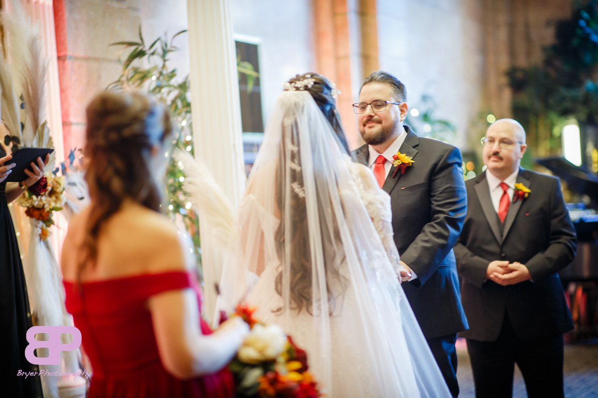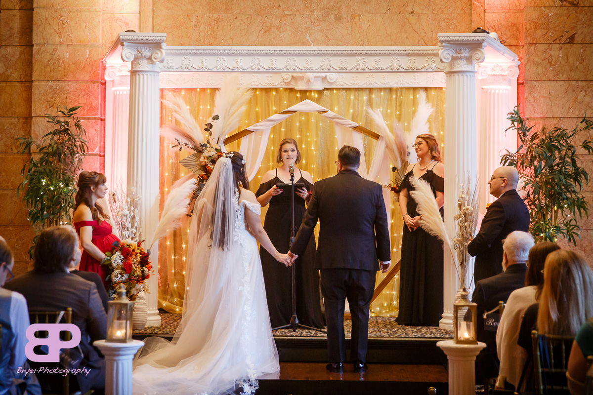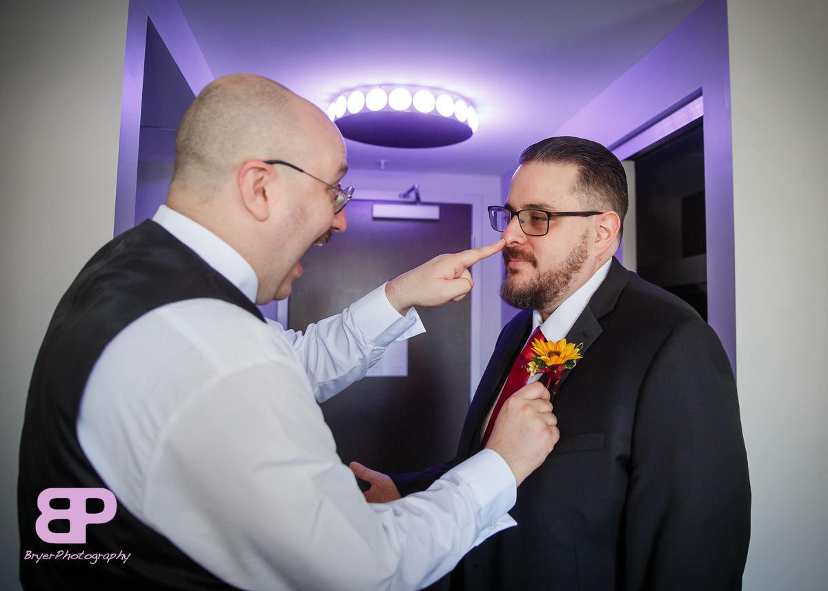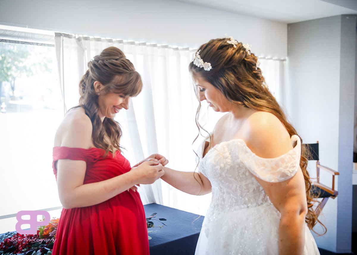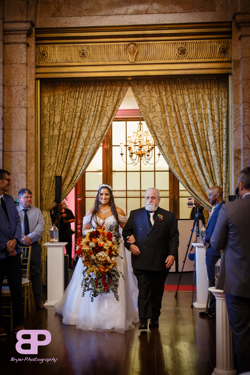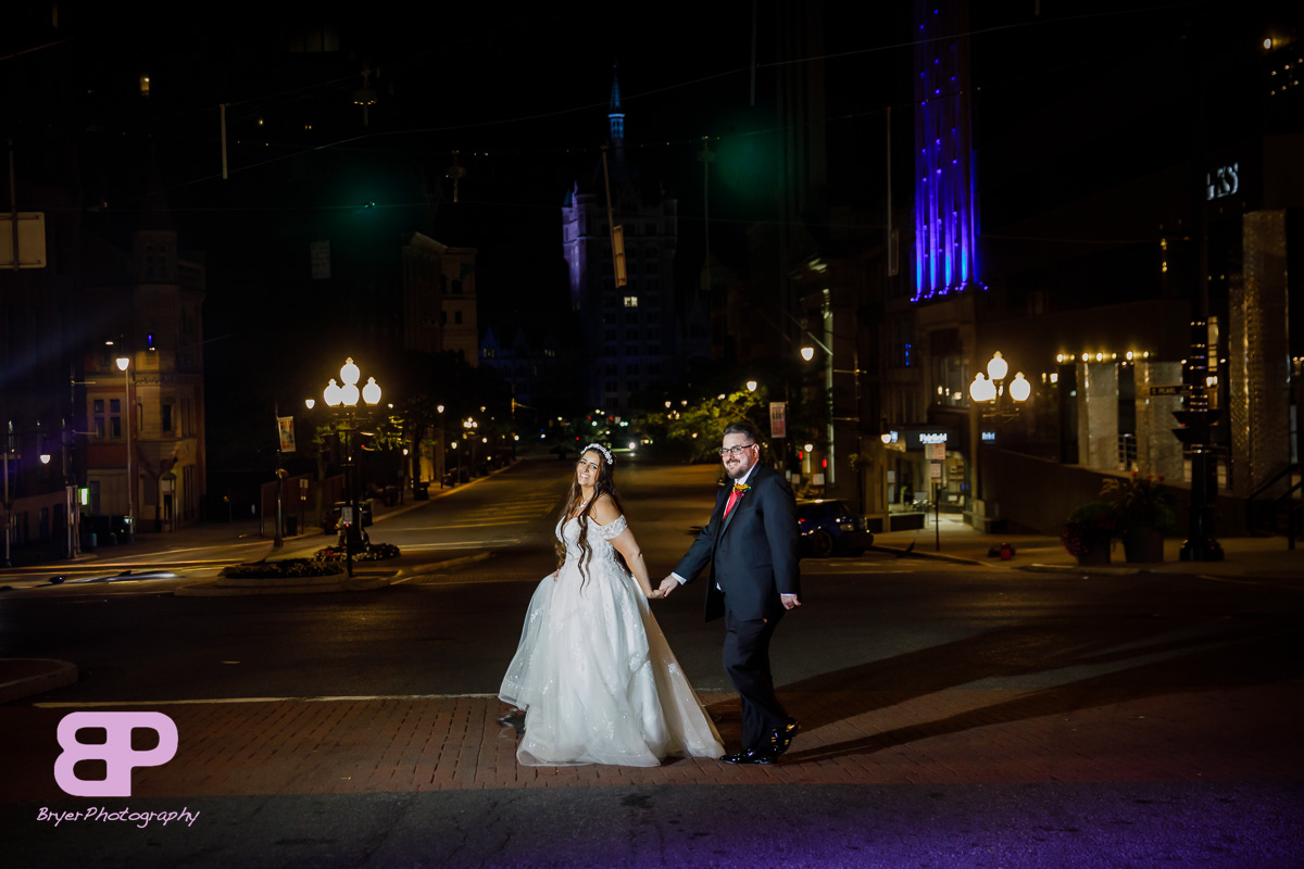 All of the elements aligned for Genevieve and Aaron’s wedding day. The two, both looking like a million bucks, fittingly had a beautiful first look at the million dollar staircase at the State Capitol, followed by some pictures at the State Plaza. Love was in the air both at the I Love NY tourist op and every other photo location we stopped at for these two. We then headed to the State Room which was adorned with all sorts of beautiful research decor from the petrie dish place cards, to the microscope centerpieces, to the science-theme etched wedding cake, to the hands on science stations to the flower girls carrying their flowers in flasks. Science was everywhere! Dr. Gen and Aaron had a beautiful ceremony, officiated by friends, that continued the theme, culminating in personalized vows and an exchanging of rings. Then the celebrating began. After cocktail hour, the two were introduced as husband and wife and started the party with a first dance and bridal party toasts. After dinner, was a dance floor was opened with a first for us- over a dozen Zumba dancers passionately doing a choreographed routine to Ptibull’s “Fireball.” It was the best advertisement for a fitness class we’ve ever seen! And from there, the dance floor never stopped! We had such a wonderful time getting to know this amazing couple throughout the day, and seeing these two celebrate their love, it doesn’t take a doctorate to see that these two have formed an unbreakable bond.