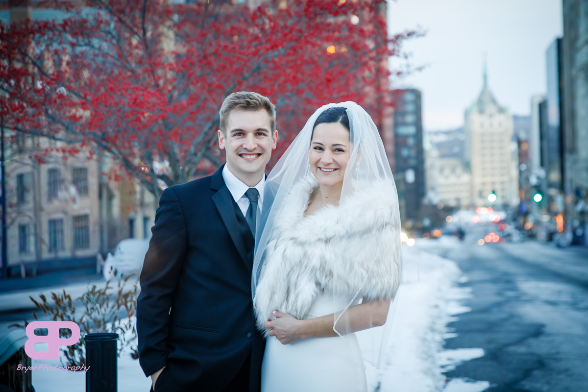 Emily and Todd decided to bring in this New Year with a wedding and we were so happy to be a part of it. They got married at the Renaissance Hotel surrounded by friends and family. After getting ready, the two had their first look and braved the cold for some outdoor photos. The two were all smiles all day from when we met up with them to when we left. The food was delicious and the photobooth and dance floor were hopping. As the clock ticked closer to midnight, guests armed themselves with glasses of champagne and started the countdown to a new beginning. We know that Emily and Todd have been counting down to this amazing wedding day and we are so glad they had such a beautiful celebration! We wish them all the best this new year and every new year of the marriage they are building together.